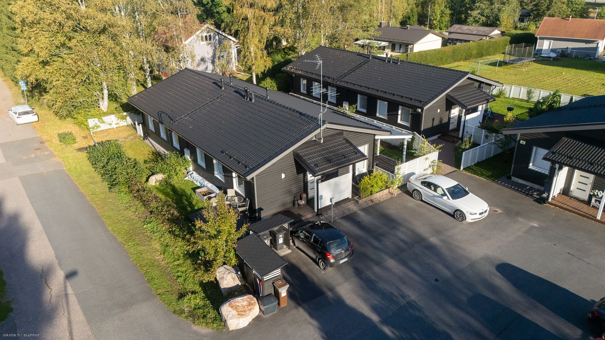 Asunnolla on kaksi sähkötolpallista autopaikkaa suoraan asunnon edessä.