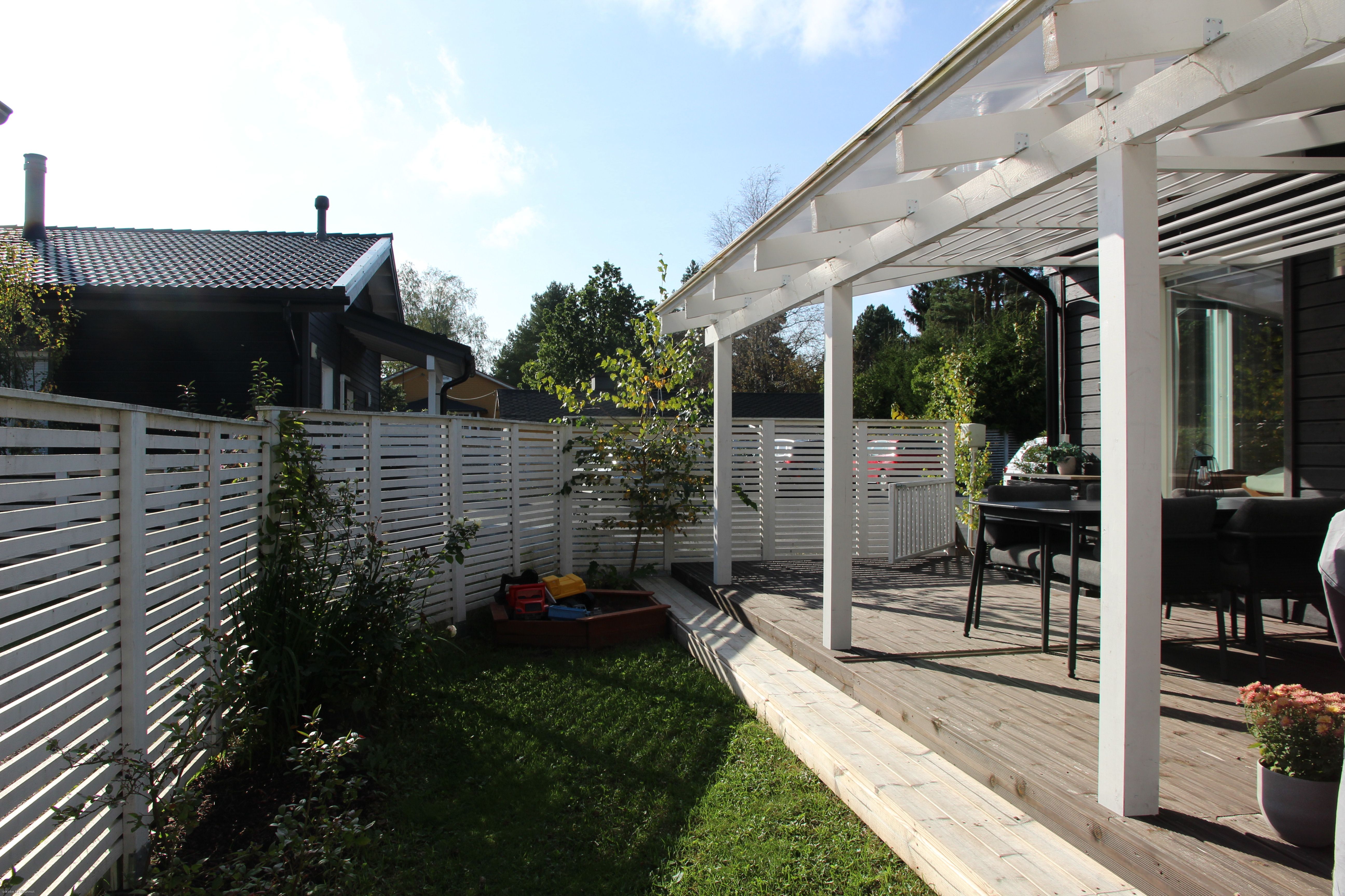 - Valokuitu asennettu 2021, ilmalämpöpumppu asennettu 2020, terassi katettu 2024.