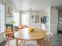 Avara olohuone ja avokeittiö muodostavat kodin sydämen. Keittiössä on kaikki tarvittava: astianpesukone, induktioliesi, erillinen uuni ja liesituuletin. Makuuhuoneet on suunniteltu joustavasti - tarvittaessa isompi on jaettavissa kahdeksi erilliseksi huoneeksi perheen tarpeiden mukaan.