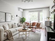 Tämä tilava kulmahuoneisto tarjoaa toimivan pohjaratkaisun ja runsaasti luonnonvaloa. Kodin sydän on avara olohuone, josta on käynti suojaisalle lasitetulle parvekkeelle – täydellinen paikka rentoutumiseen vuodenajasta riippumatta. Keittiö on valoisa ja kutsuva, ja lisätaso tarjoaa mukavasti lisätilaa aktiiviselle kotikokille. Tyylikkäästi uusittu kylpyhuone sekä erillinen wc tuovat arkeen mukavuutta. Asuntoon on myös asennettu ilmalämpöpumppu, joka varmistaa miellyttävän sisäilman kesän kuumimpinakin päivinä.