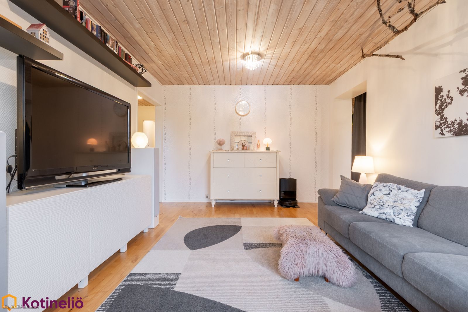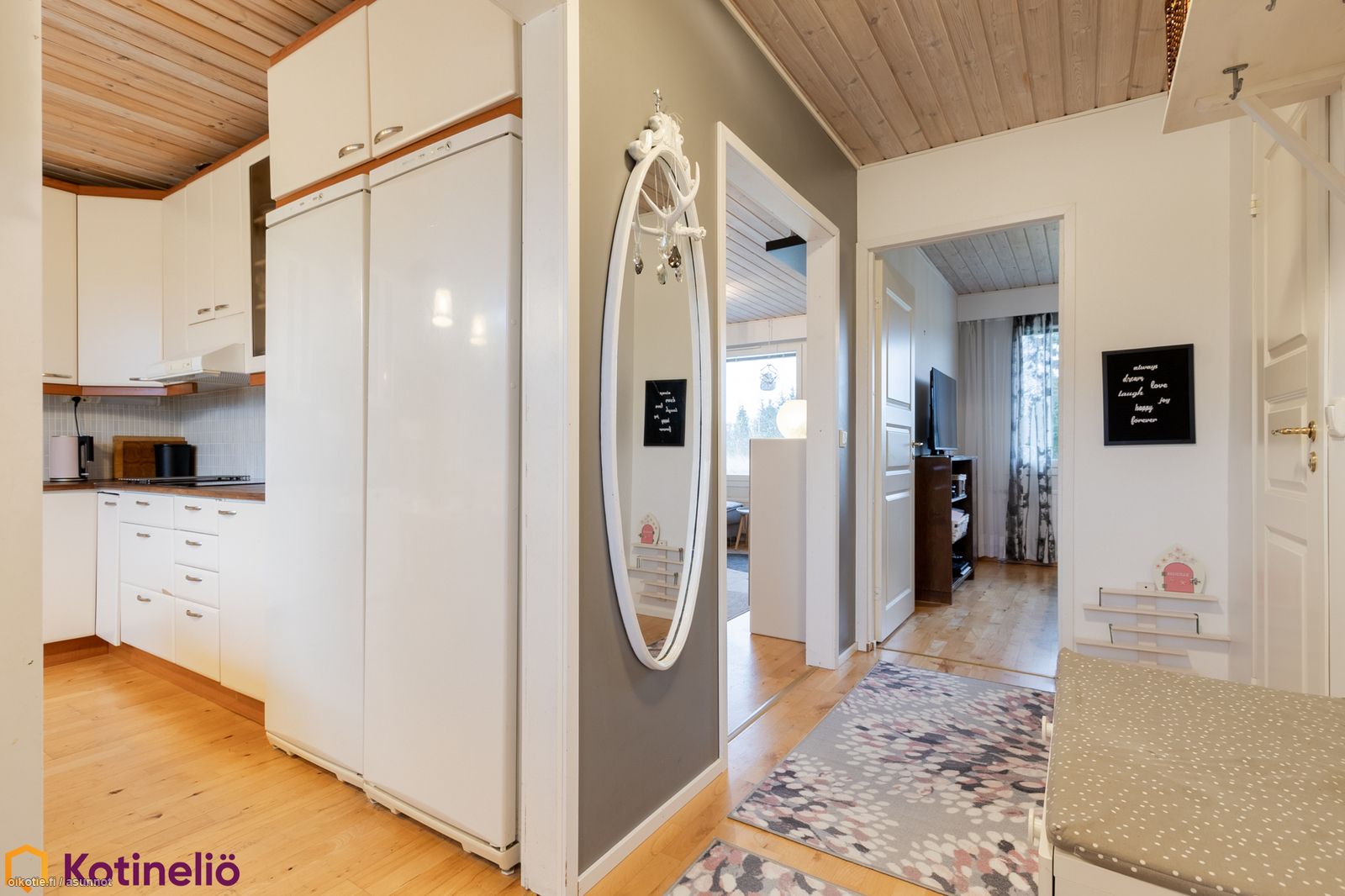 - Lattia: Keittiössä: parketti. Pesutiloissa: laatta. Erillisessä WC:ssä: laatta. Olohuoneessa: parketti. Makuuhuoneessa: parketti. Saunassa: laatta. Seinät: Keittiössä: maalattu, tapetti. Pesutiloissa: kaakeli. Erillisessä WC:ssä: puu. Saunassa: puu.
