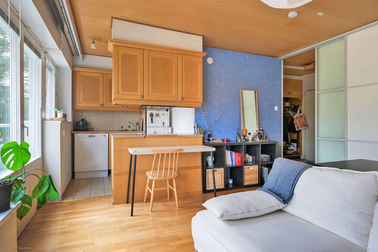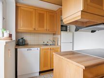 - Kokopuiset kaapistot, saareke, induktioliesi, liesituuletin, jääkaappi/pieni pakastin ns. jenkkikaappi, astianpesukone. Asitanpesukone ja induktioliesi on uusittu 2023.