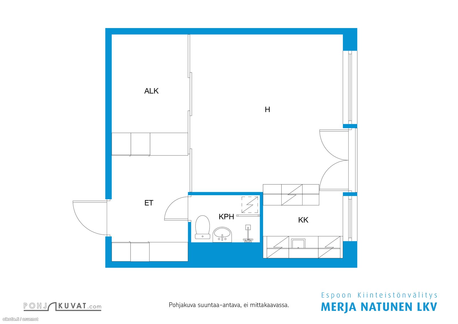 - Muuta kauppaan kuuluvaa: Eteisessä kaapistot molemmin puolin.