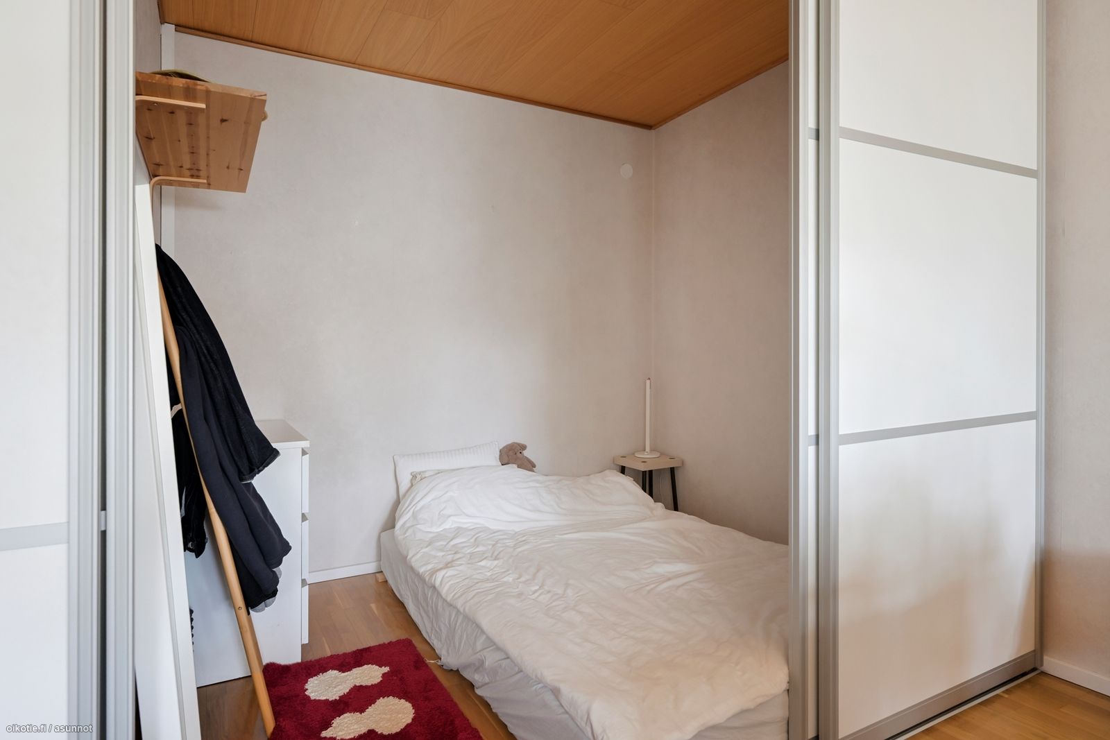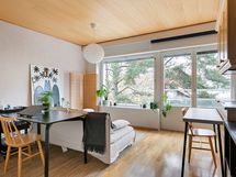 5. kerroksen valoisan yksiön ikkunat avautuvat Mäntyviidalle. Asunnossa on tilava huone, jonka perällä on liukuovin eroteltu makuualkovi. Alkoviin mahtuu hyvin isompikin sänky ja tarvittaessa säilytystilaa. Säilytystilaa onkin asunnossa runsaasti, eteisessä on kaapistot molemmilla seinillä. Keittiössä on saareke, täyspuiset kaapistot, astianpesukone ja induktioliesi. Kylpyhuone on remontoitu putkiremontin yhteydessä. Kylpyhuoneessa on pesukoneliitäntä, mutta taloyhtiöstä löytyy myös pesutupa ja kuivaushuone. Taloyhtiössä on asukkaiden käytössä myös saunatilat samoin kuin kattoterassi, josta avautuu upeat näkymät yli Otsolahden. Taloyhtiö on hyvin hoidettu, eikä suurempia remontteja ole näköpiirissä.
