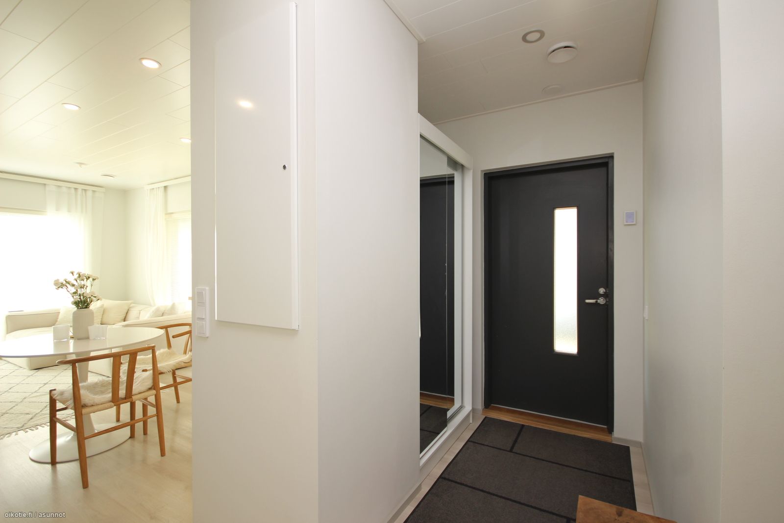 Asunto tarjoaa tilaa ja toimivuutta kahdessa tasossa. Alakerrassa avokeittiö ja ruokailutila yhdistyvät olohuoneeseen sekä on kaksi erillistä huonetta, oma sauna, hyvänkokoinen kylpyhuone, jossa on myös tilaa pyykkihoitoon sekä erillinen ph/wc. Yläkerran pohjaratkaisu on todella avara. Yläkerrasta löytyy reilukokoisen ja muuntelukelpoisen ullakkomaisen huoneen lisäksi työtila ja wc sekä säilytystilaa.