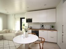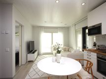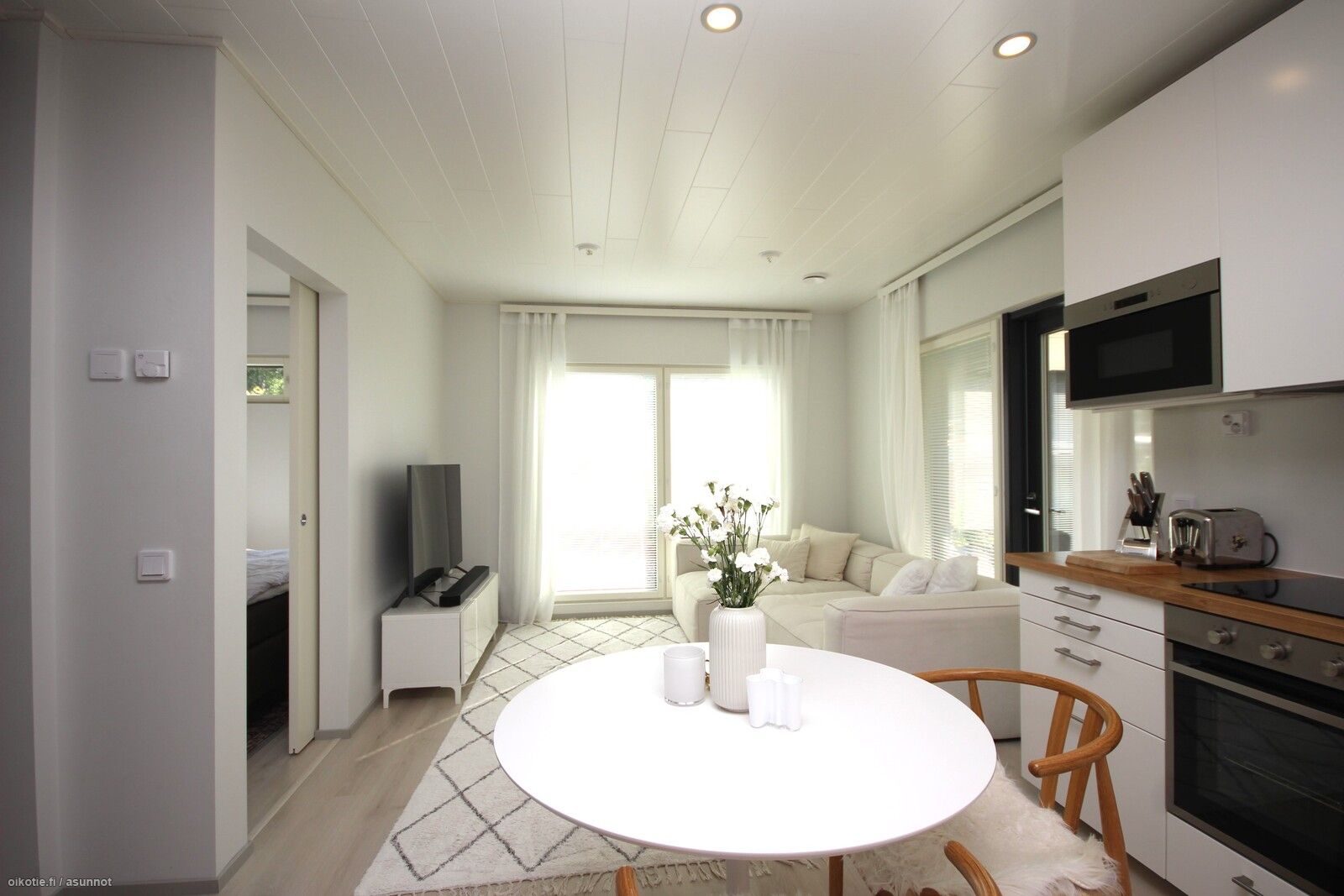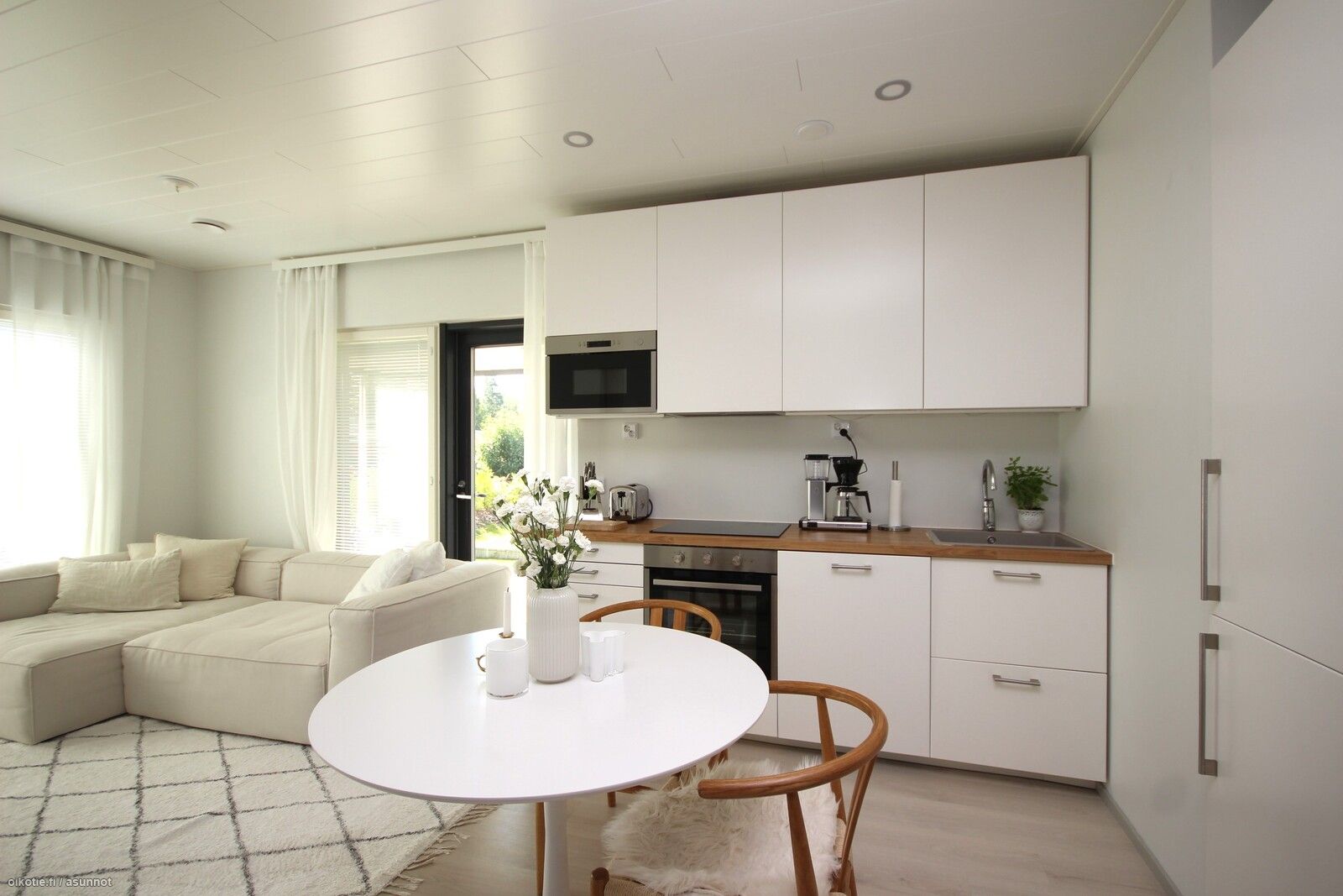 Kodin vaalea ja ajaton sisustus sekä laadukkaat materiaalit luovat viihtyisän asumisympäristön.