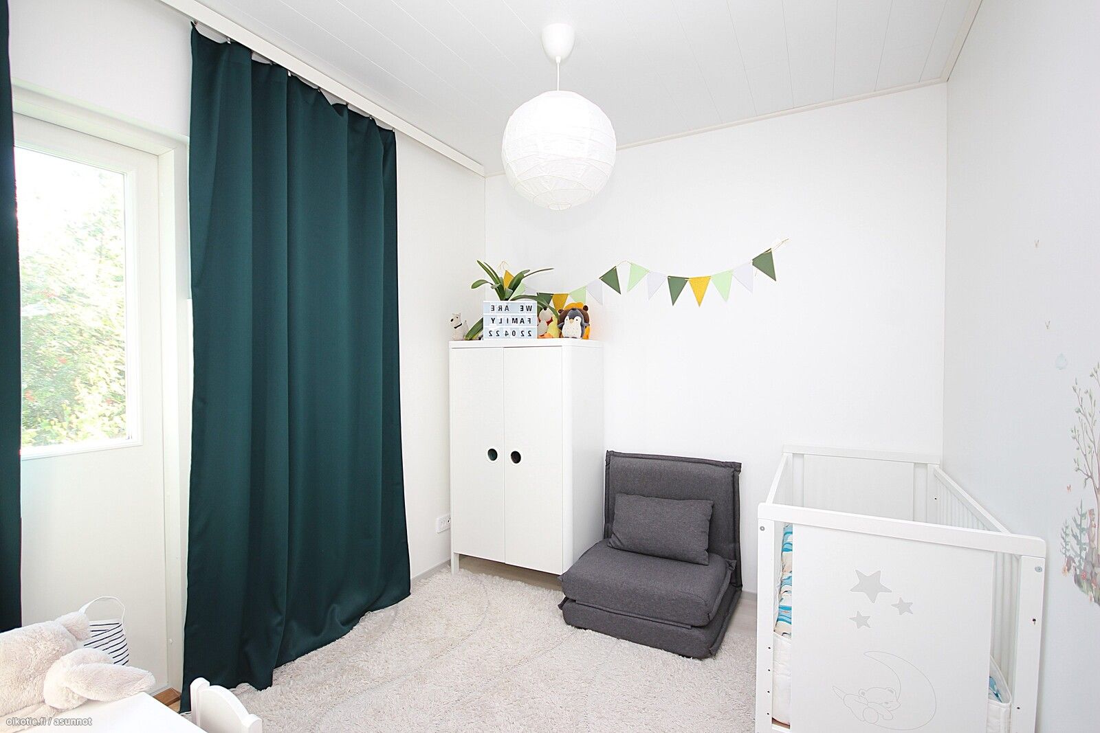 - Lattia: Keittiössä: laminaatti. Pesutiloissa: laatta. Erillisessä WC:ssä: laatta. Olohuoneessa: laminaatti. Makuuhuoneessa: laminaatti. Saunassa: laatta. Seinät: Pesutiloissa: kaakeli. Erillisessä WC:ssä: kaakeli. Olohuoneessa: maalattu. Makuuhuoneessa: maalattu. Saunassa: puu.