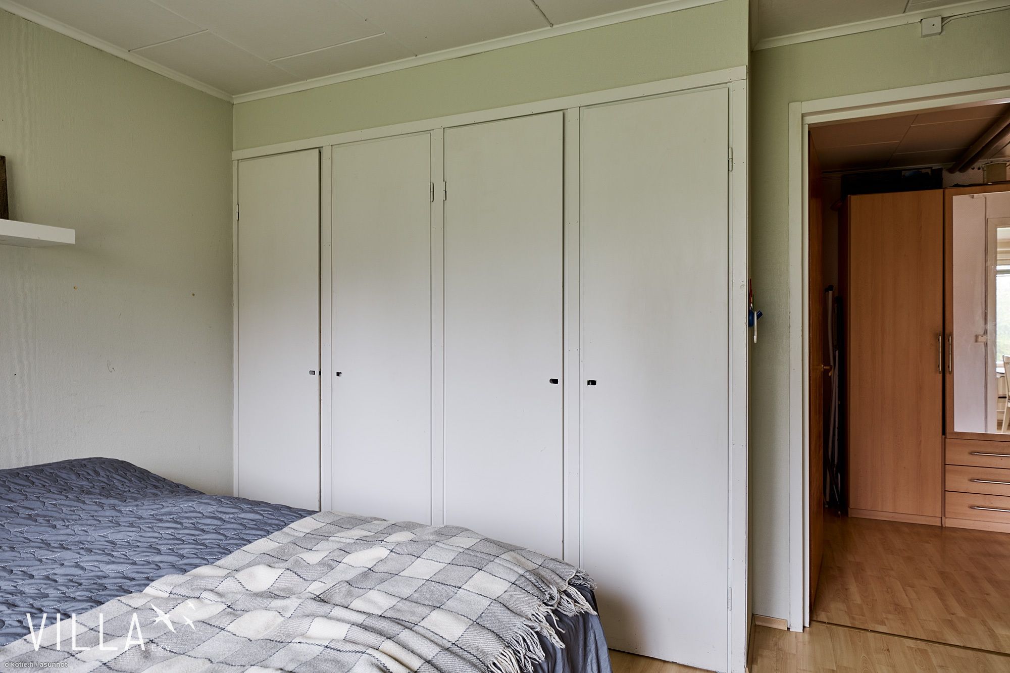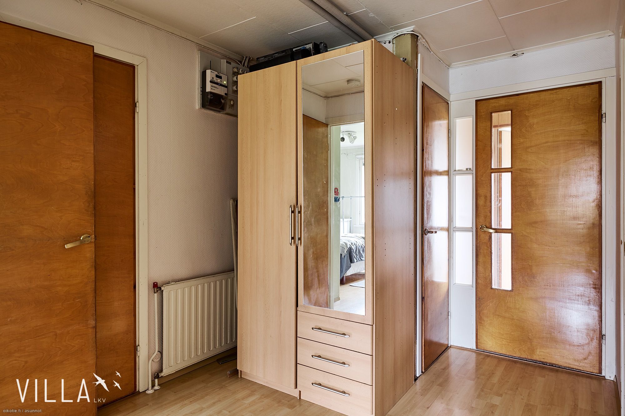 - Lattia: Keittiössä: laminaatti. Pesutiloissa: laatta. Erillisessä WC:ssä: muovi. Olohuoneessa: parketti. Makuuhuoneessa: parketti. Saunassa: laatta. Seinät: Keittiössä: tapetti. Pesutiloissa: kaakeli. Erillisessä WC:ssä: tapetti. Olohuoneessa: tapetti. Makuuhuoneessa: tapetti. Saunassa: puu.