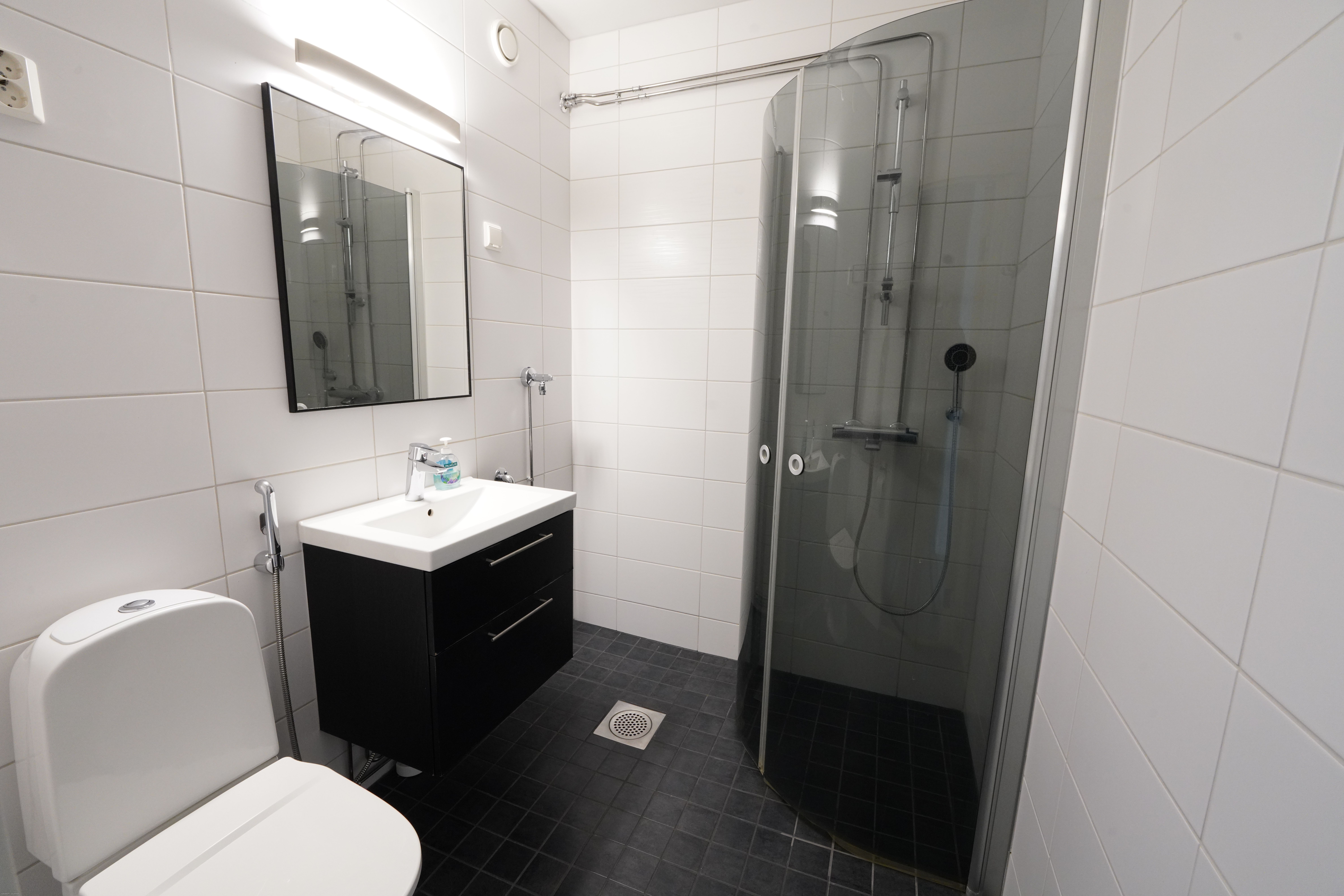 - Varusteet: WC, Suihku, Suihkuseinä, Pesukoneliitäntä, Peili