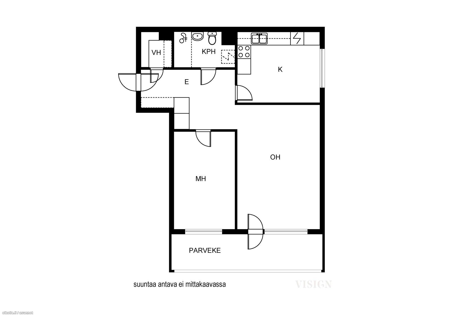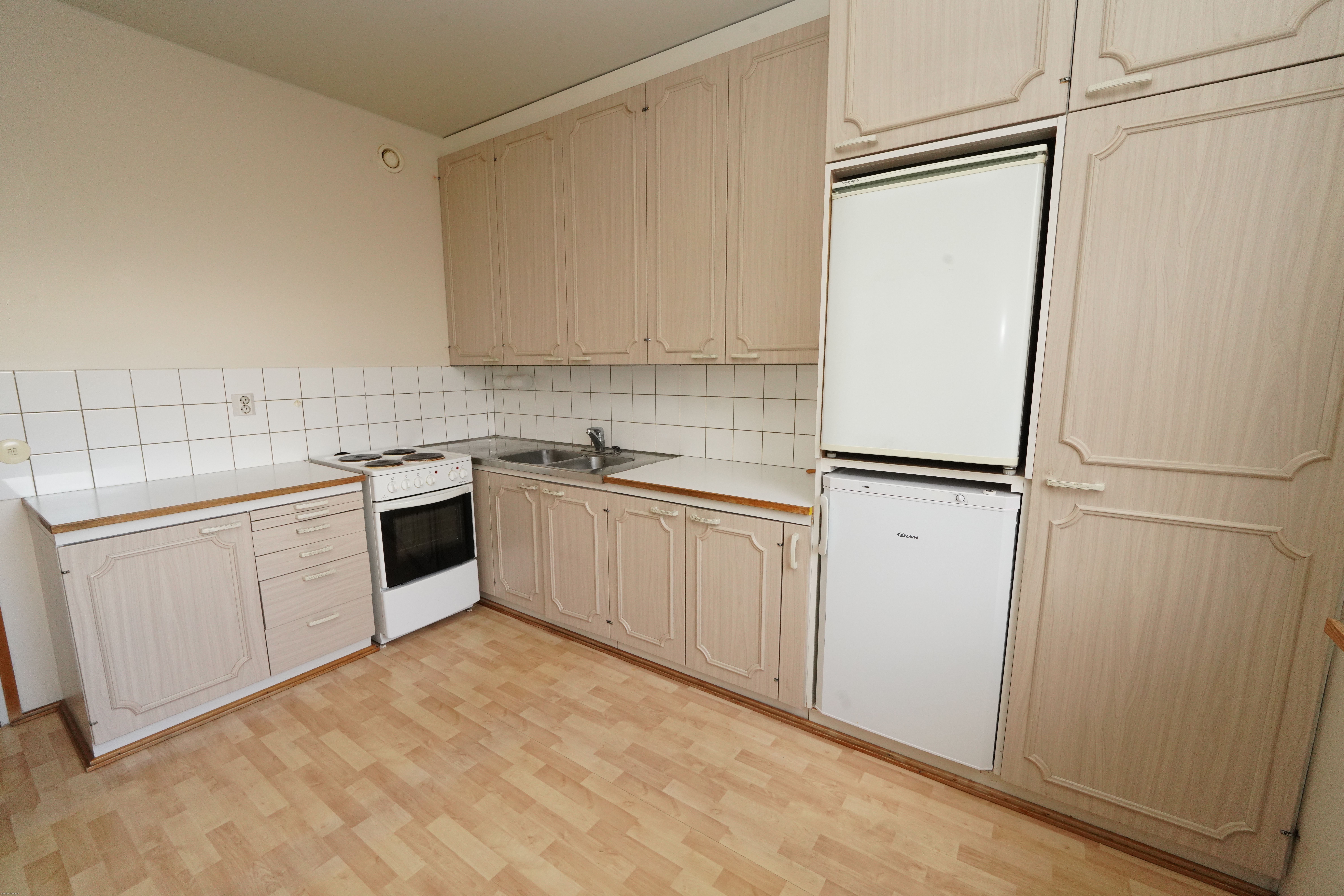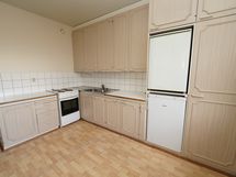 - Varusteet: Jääkaappi, Pakastin. Työtaso: Laminaattitaso. Liesi: Sähköliesi