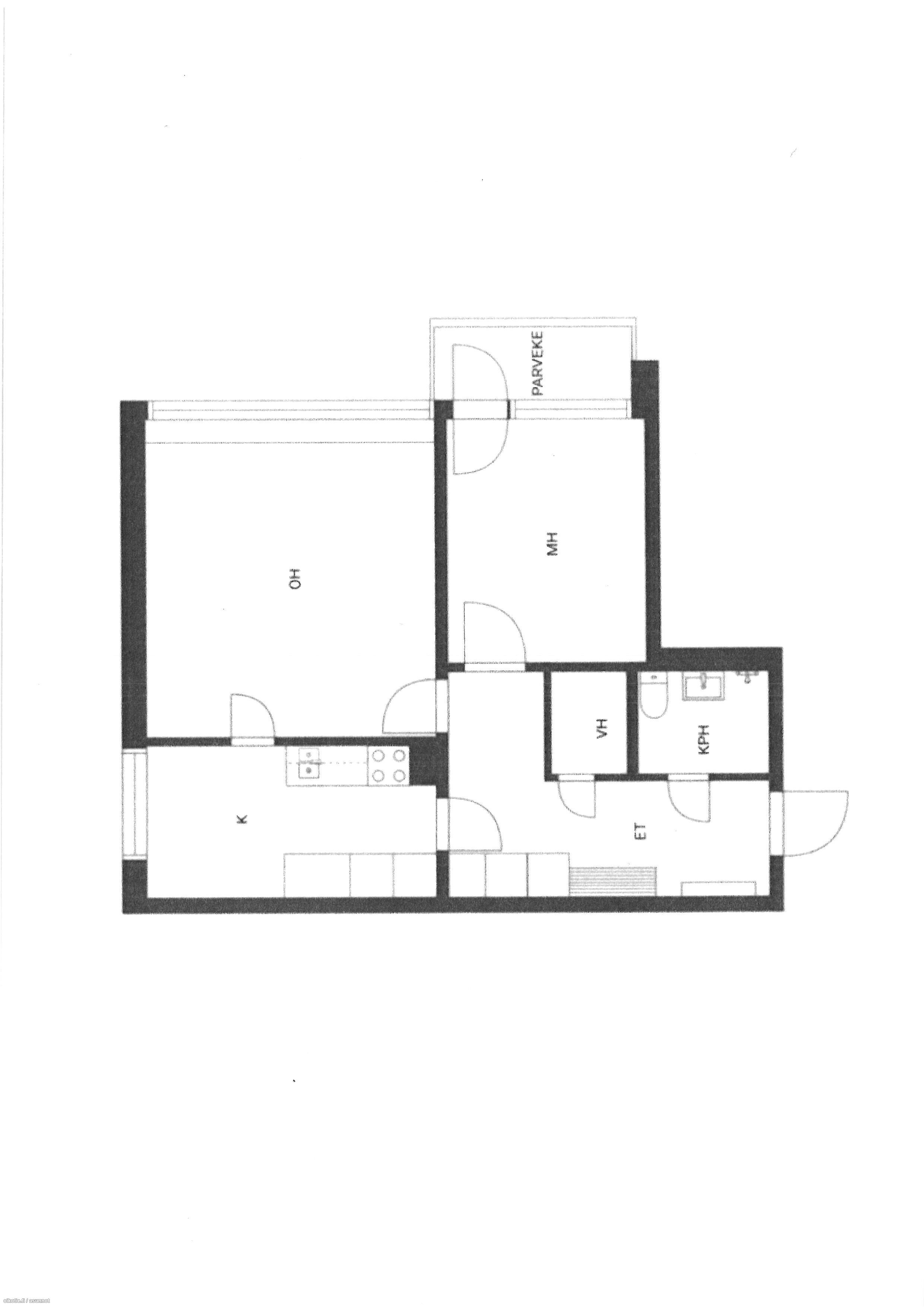 - Varusteet: Jääkaappipakastin. Liesi: Sähköliesi