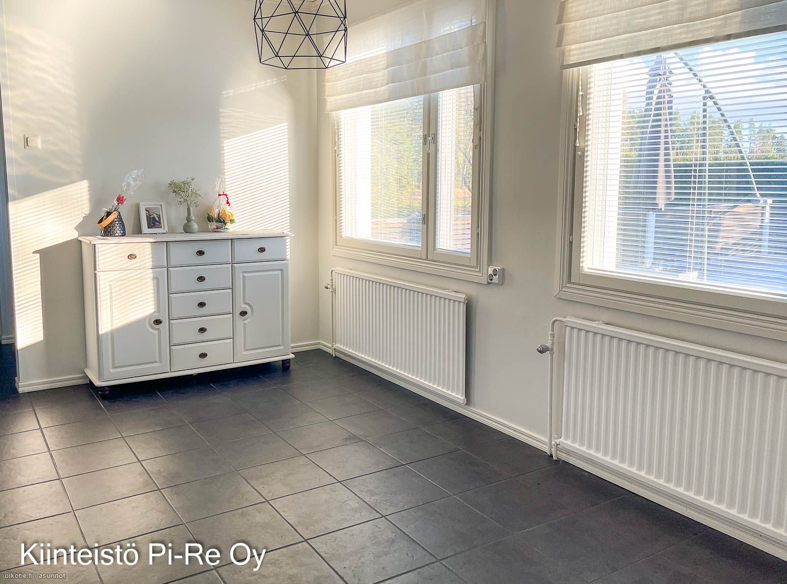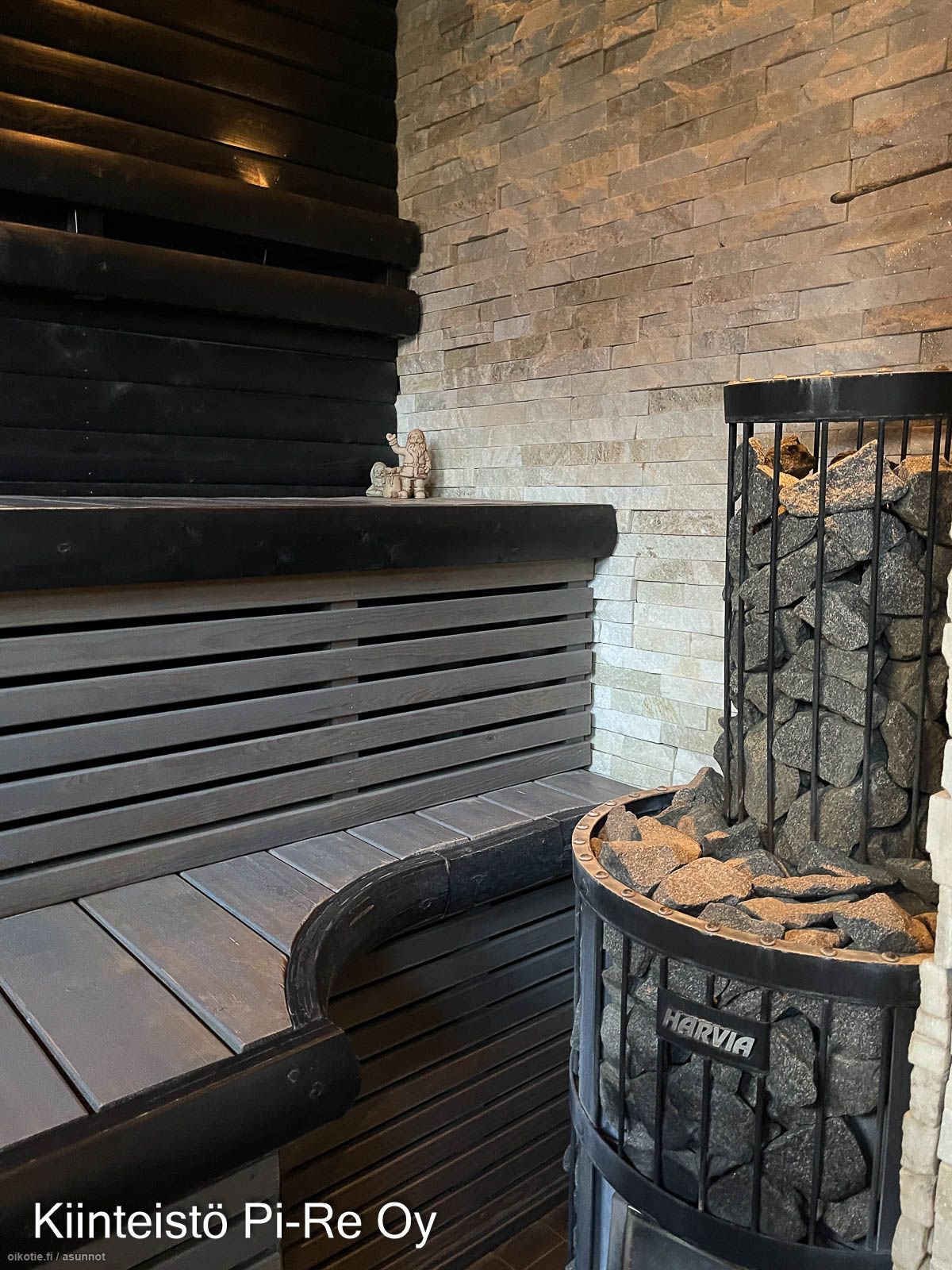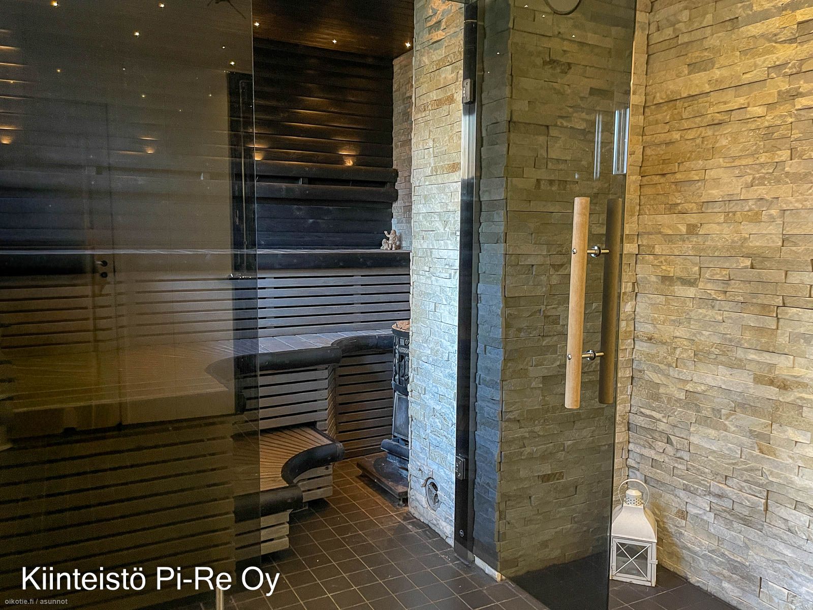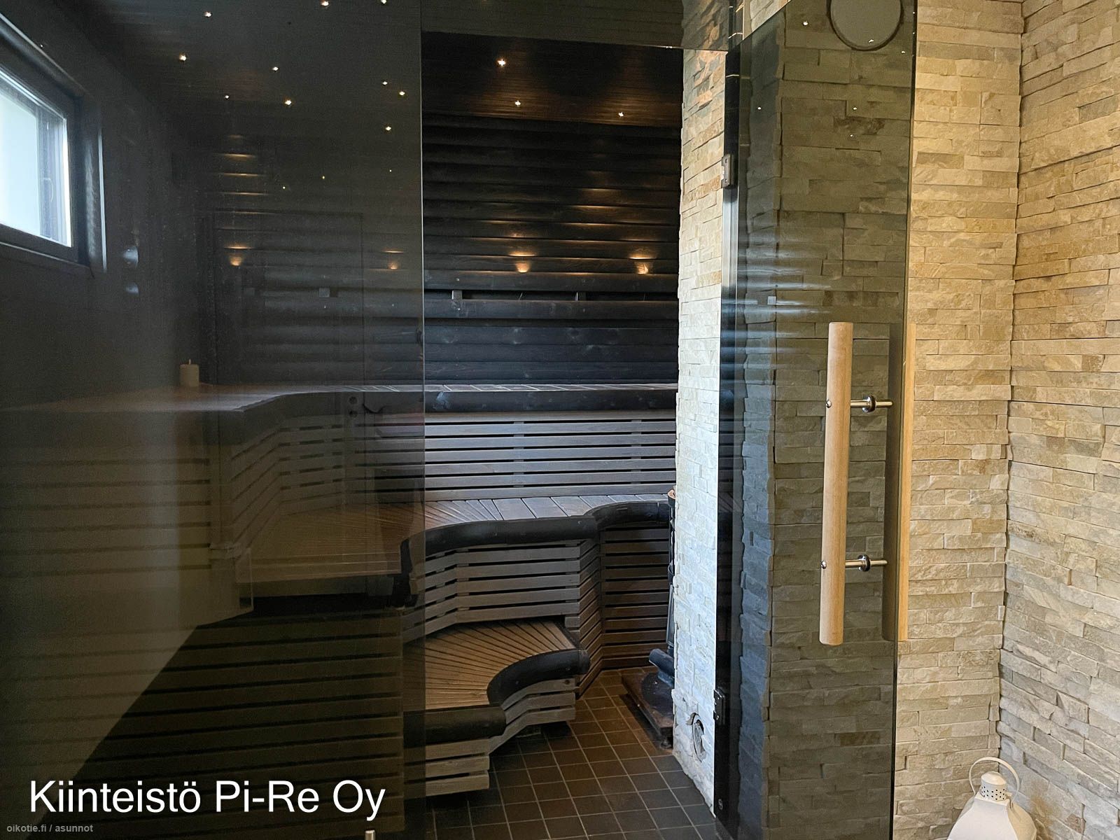 - KEITTIÖ: Kaunis ja tilava keittiö, joka laitteineen uusittu 2019. Keittiössä laattalattia mukavuuslämmöllä, paljon kaapistoja ja laskutilaa. LG:n Kylmäkeskus jääpalakoneella, erillisuuni, induktiollesi, astianpesukone, komposiittiallas ja liesituuletin. OLOHUONE: Tilava olohuone ja itä-etelä suuntaiset ikkunat päästävät päivänvalon hienosti sisään. Lattiassa laminaatti, yhdellä seinällä tehostetapetti, valkoinen paneelikatto ja olohuoneen helmenä kaunis varaava takka leivinuunilla. MAKUUHUONEET: Neljä makuuhuonetta, joissa lattioissa laminaatti, seinät tapetoidut tai maalattu ja valkoinen sisustuslevykatto. Aikuisten makuuhuoneessa kiva sivuikkuna, kauniit pariovet lasi-ikkunoilla ja hieno valaistus. Aikuisten makuuhuone on rakennettu 2024. KODINHOITOHUONE: Tilassa laattalattia, seinät maalatut ja osin kiveä. Tila pyykinpesukoneelle. Aikuisten makuuhuoneen vieressä vielä pieni syvennys lasten vuoteelle, mutta siitä saa vaikkapa vaatehuoneen ja se on helppo yhdistää kodinhoitohuoneeseen. Tilassa tehokas, mukava valaistus. Kodinhoitohuoneesta käynti puuvajaan. Kodinhoitohuone rakennettu 2023. SAUNAOSASTO: Lasiseinän takaa avautuu upea sauna, jossa lämminhenkiset muotolauteet, tähtitaivas valaistus, laattalattia ja Harvian puilla lämmitettävä kivikorikiuas. Kiukaan tausta kiveä. Sauna ja pesutilat uusittu 2015. PESEYTYMISTILAT: Tilavassa pesuhuoneessa suihku, laattalattia ja seinät kaakeloidut. Osa seinästä kiveä. Täällä myös tahtitaivas valaistus. WC-TILAT: Sisääntulon yhteydessä ikkunallinen wc, jossa laattalattia, seinät kaakeloidut, peili- ja allaskaappi. ETEISTILAT: Terassilta astutaan uusitusta ulko-ovesta väljään, valoisaan eteistilaan, jossa laattalattia mukavuuslämmöllä. Yksi seinistä kiveä. Mikäli kaipaat kappitilaa, tänne niitä mahtuu. TERASSI: Vuonna 2014 talon edustalle on rakennettu 80 m²:n suuruinen terassi, jossa todella mahdut grillailemaan ja kylpytynnyrin sinne on helppo upottaa, jos niin haluaa.