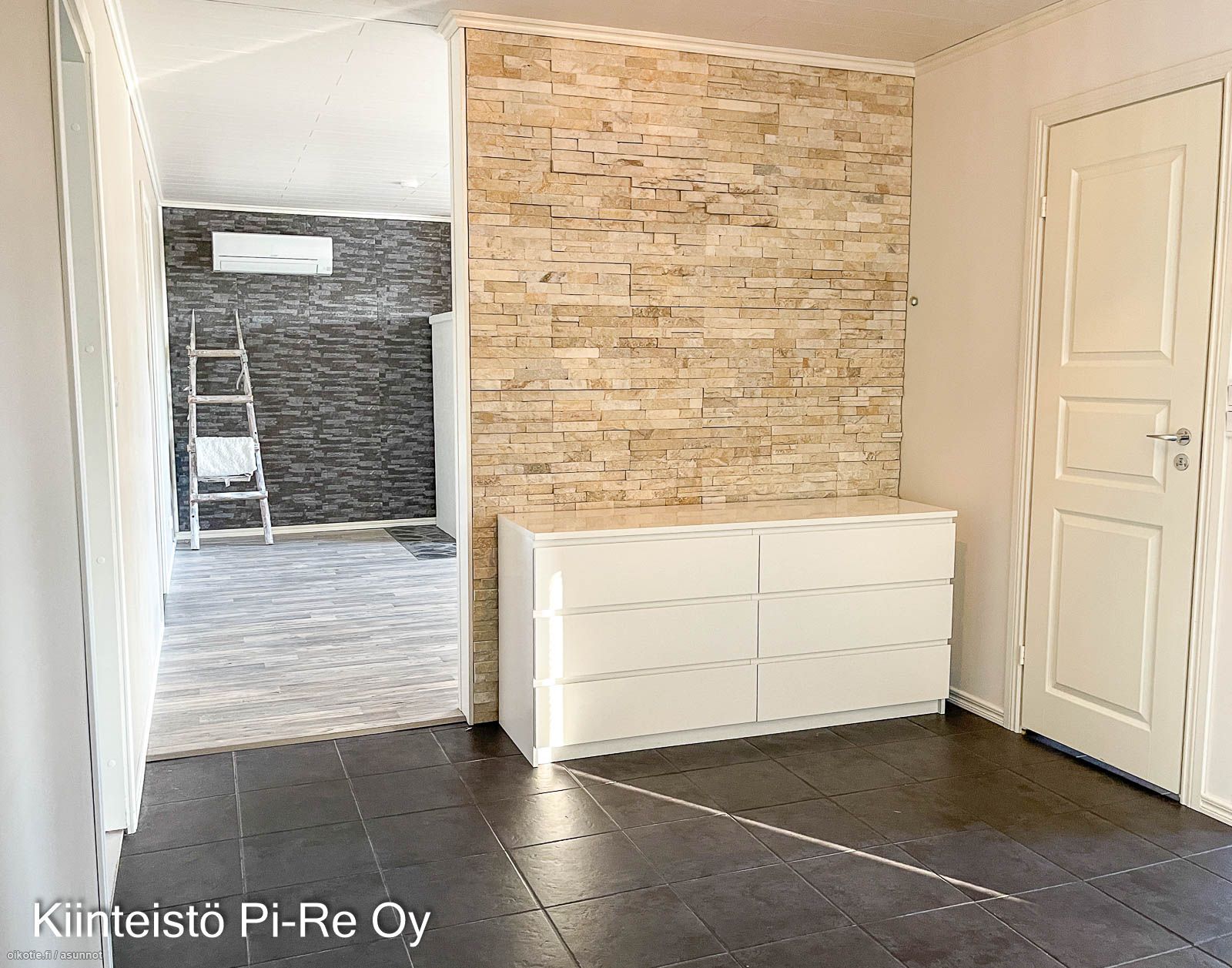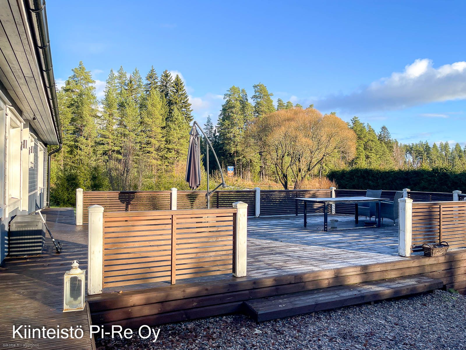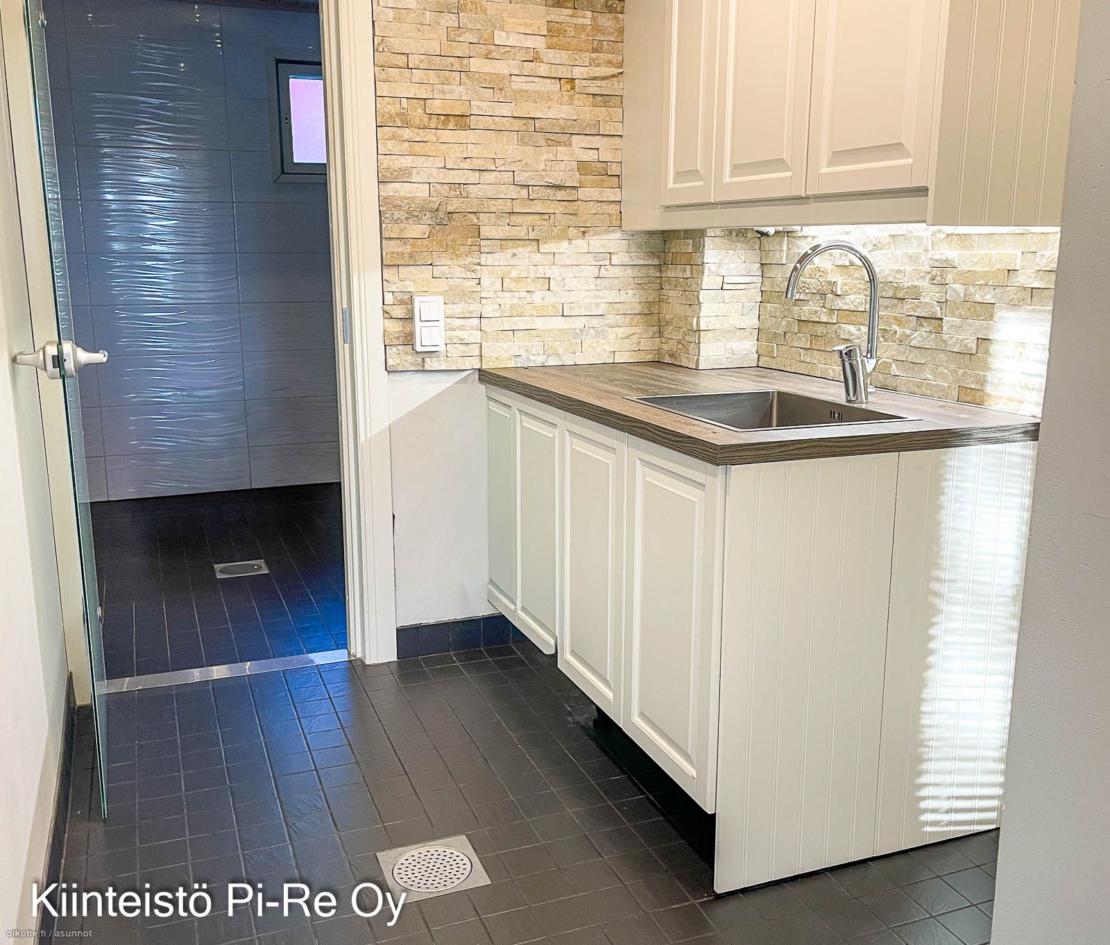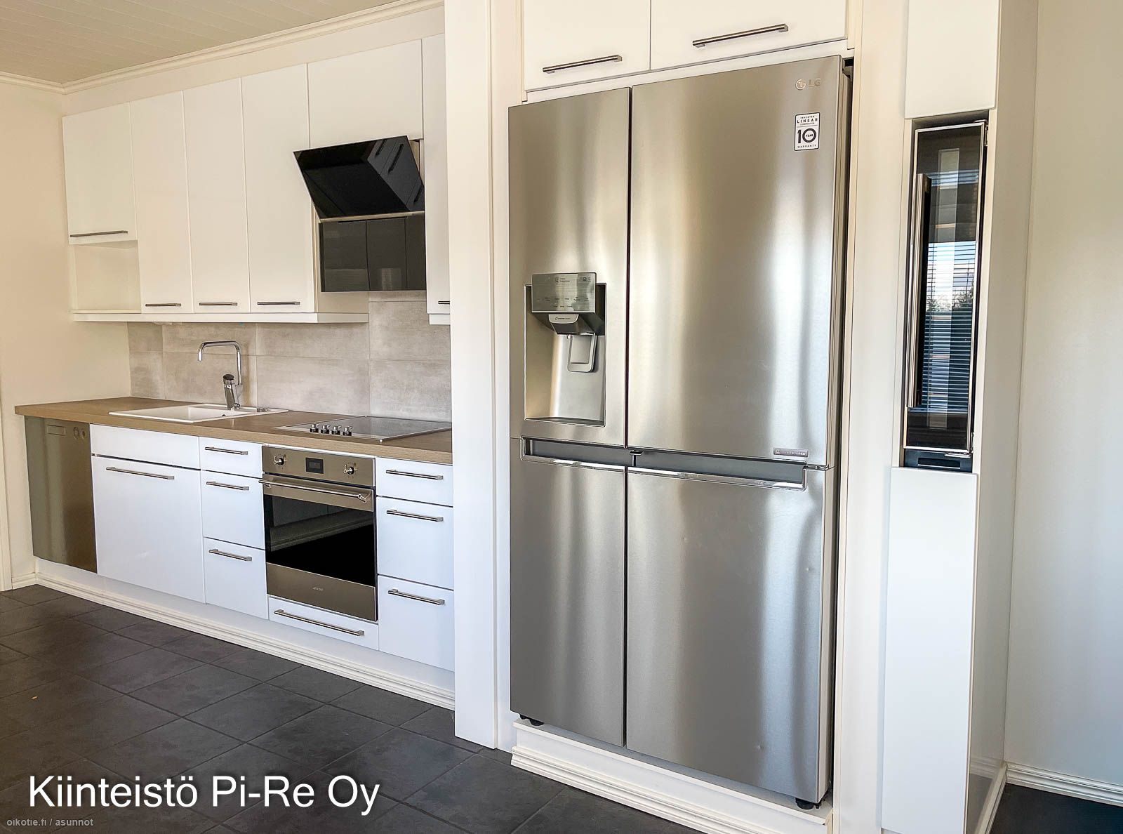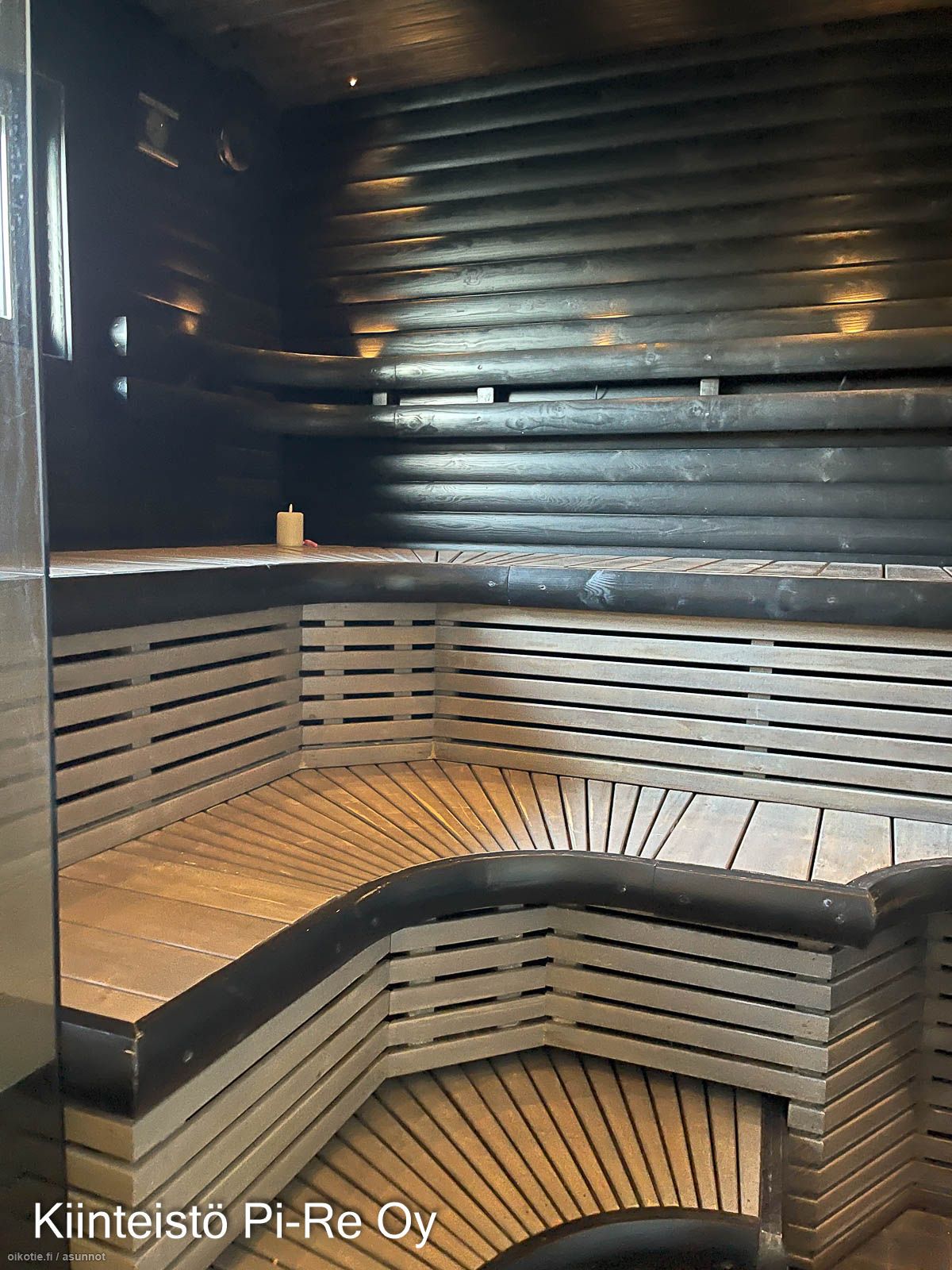 - KEITTIÖ: Kaunis ja tilava keittiö, joka laitteineen uusittu 2019. Keittiössä laattalattia mukavuuslämmöllä, paljon kaapistoja ja laskutilaa. LG:n Kylmäkeskus jääpalakoneella, erillisuuni, induktiollesi, astianpesukone, komposiittiallas ja liesituuletin. OLOHUONE: Tilava olohuone ja itä-etelä suuntaiset ikkunat päästävät päivänvalon hienosti sisään. Lattiassa laminaatti, yhdellä seinällä tehostetapetti, valkoinen paneelikatto ja olohuoneen helmenä kaunis varaava takka leivinuunilla. MAKUUHUONEET: Neljä makuuhuonetta, joissa lattioissa laminaatti, seinät tapetoidut tai maalattu ja valkoinen sisustuslevykatto. Aikuisten makuuhuoneessa kiva sivuikkuna, kauniit pariovet lasi-ikkunoilla ja hieno valaistus. Aikuisten makuuhuone on rakennettu 2024. KODINHOITOHUONE: Tilassa laattalattia, seinät maalatut ja osin kiveä. Tila pyykinpesukoneelle. Aikuisten makuuhuoneen vieressä vielä pieni syvennys lasten vuoteelle, mutta siitä saa vaikkapa vaatehuoneen ja se on helppo yhdistää kodinhoitohuoneeseen. Tilassa tehokas, mukava valaistus. Kodinhoitohuoneesta käynti puuvajaan. Kodinhoitohuone rakennettu 2023. SAUNAOSASTO: Lasiseinän takaa avautuu upea sauna, jossa lämminhenkiset muotolauteet, tähtitaivas valaistus, laattalattia ja Harvian puilla lämmitettävä kivikorikiuas. Kiukaan tausta kiveä. Sauna ja pesutilat uusittu 2015. PESEYTYMISTILAT: Tilavassa pesuhuoneessa suihku, laattalattia ja seinät kaakeloidut. Osa seinästä kiveä. Täällä myös tahtitaivas valaistus. WC-TILAT: Sisääntulon yhteydessä ikkunallinen wc, jossa laattalattia, seinät kaakeloidut, peili- ja allaskaappi. ETEISTILAT: Terassilta astutaan uusitusta ulko-ovesta väljään, valoisaan eteistilaan, jossa laattalattia mukavuuslämmöllä. Yksi seinistä kiveä. Mikäli kaipaat kappitilaa, tänne niitä mahtuu. TERASSI: Vuonna 2014 talon edustalle on rakennettu 80 m²:n suuruinen terassi, jossa todella mahdut grillailemaan ja kylpytynnyrin sinne on helppo upottaa, jos niin haluaa.