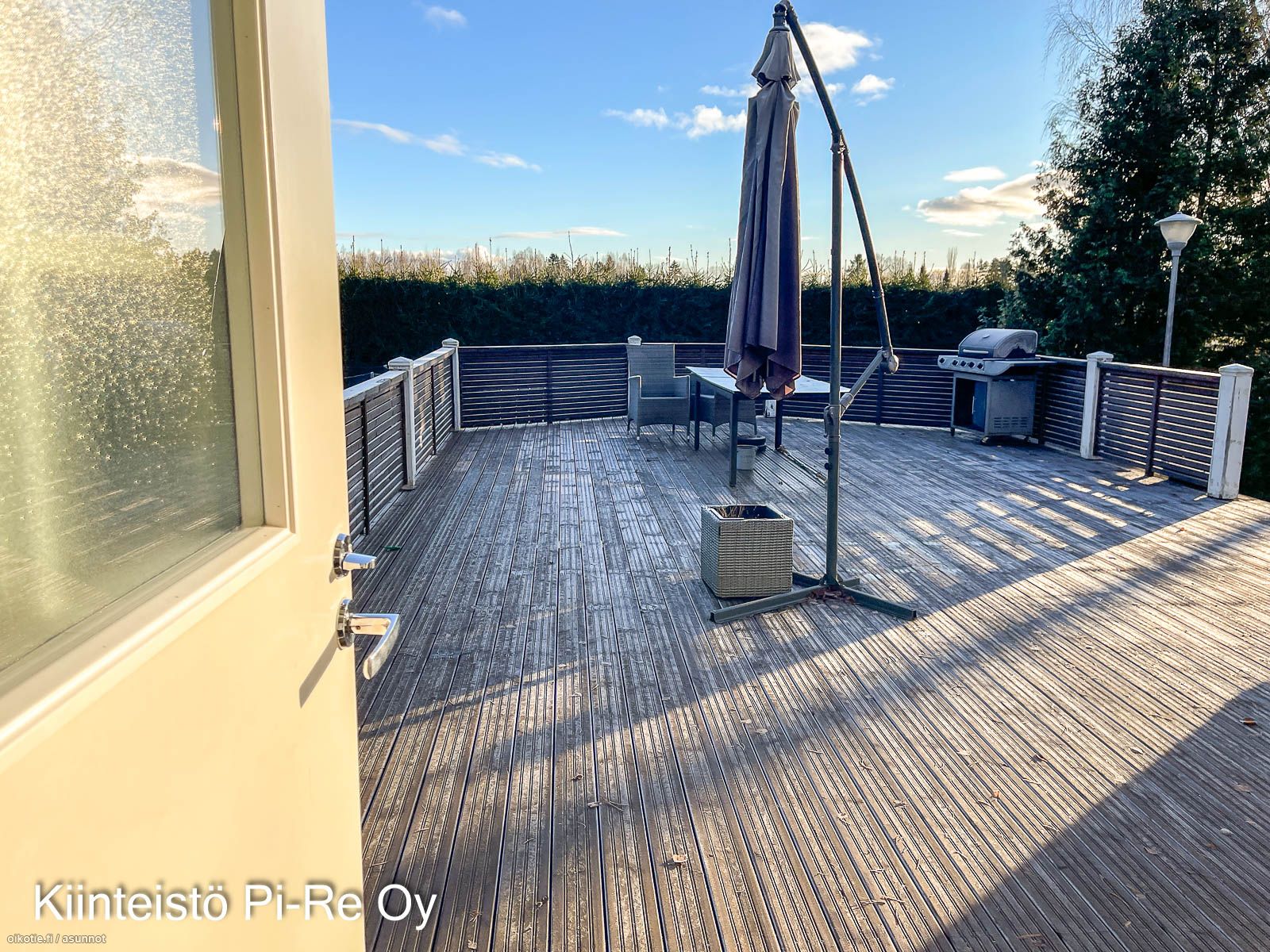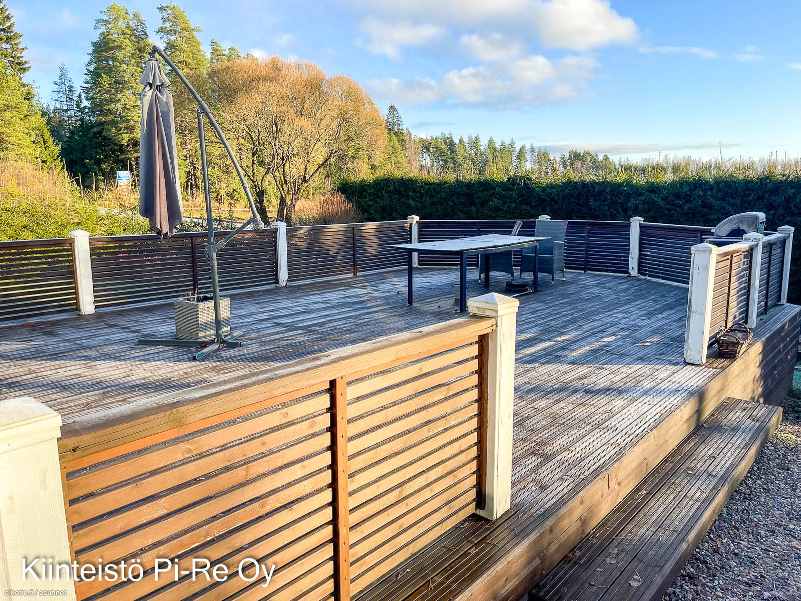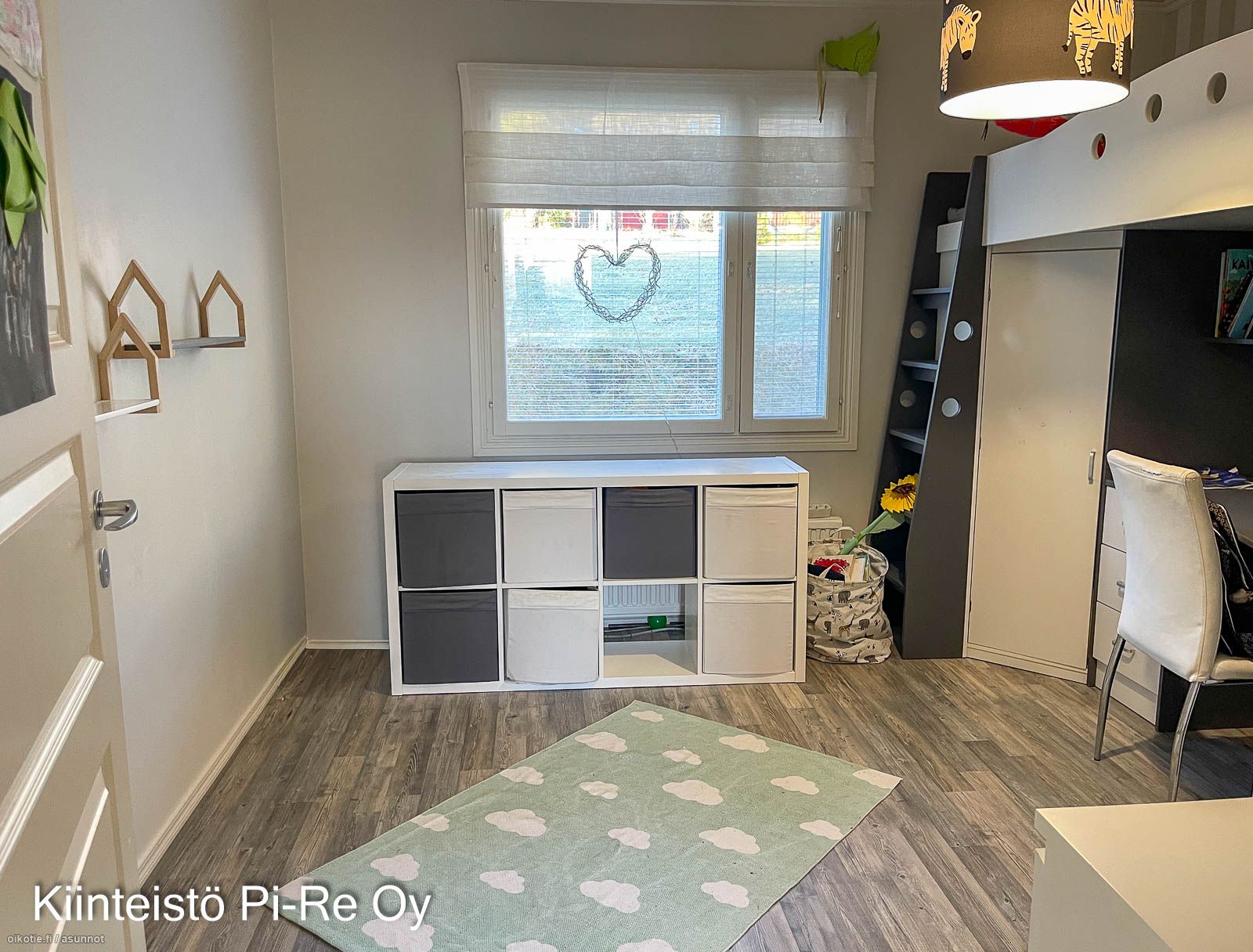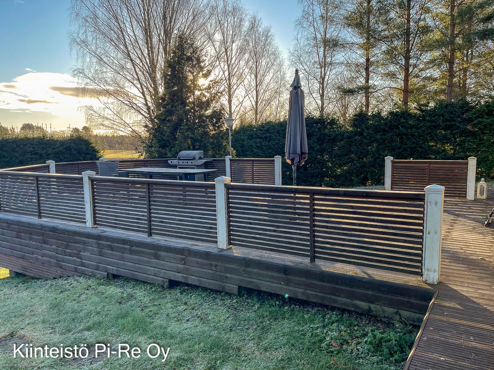 - KEITTIÖ: Kaunis ja tilava keittiö, joka laitteineen uusittu 2019. Keittiössä laattalattia mukavuuslämmöllä, paljon kaapistoja ja laskutilaa. LG:n Kylmäkeskus jääpalakoneella, erillisuuni, induktiollesi, astianpesukone, komposiittiallas ja liesituuletin. OLOHUONE: Tilava olohuone ja itä-etelä suuntaiset ikkunat päästävät päivänvalon hienosti sisään. Lattiassa laminaatti, yhdellä seinällä tehostetapetti, valkoinen paneelikatto ja olohuoneen helmenä kaunis varaava takka leivinuunilla. MAKUUHUONEET: Neljä makuuhuonetta, joissa lattioissa laminaatti, seinät tapetoidut tai maalattu ja valkoinen sisustuslevykatto. Aikuisten makuuhuoneessa kiva sivuikkuna, kauniit pariovet lasi-ikkunoilla ja hieno valaistus. Aikuisten makuuhuone on rakennettu 2024. KODINHOITOHUONE: Tilassa laattalattia, seinät maalatut ja osin kiveä. Tila pyykinpesukoneelle. Aikuisten makuuhuoneen vieressä vielä pieni syvennys lasten vuoteelle, mutta siitä saa vaikkapa vaatehuoneen ja se on helppo yhdistää kodinhoitohuoneeseen. Tilassa tehokas, mukava valaistus. Kodinhoitohuoneesta käynti puuvajaan. Kodinhoitohuone rakennettu 2023. SAUNAOSASTO: Lasiseinän takaa avautuu upea sauna, jossa lämminhenkiset muotolauteet, tähtitaivas valaistus, laattalattia ja Harvian puilla lämmitettävä kivikorikiuas. Kiukaan tausta kiveä. Sauna ja pesutilat uusittu 2015. PESEYTYMISTILAT: Tilavassa pesuhuoneessa suihku, laattalattia ja seinät kaakeloidut. Osa seinästä kiveä. Täällä myös tahtitaivas valaistus. WC-TILAT: Sisääntulon yhteydessä ikkunallinen wc, jossa laattalattia, seinät kaakeloidut, peili- ja allaskaappi. ETEISTILAT: Terassilta astutaan uusitusta ulko-ovesta väljään, valoisaan eteistilaan, jossa laattalattia mukavuuslämmöllä. Yksi seinistä kiveä. Mikäli kaipaat kappitilaa, tänne niitä mahtuu. TERASSI: Vuonna 2014 talon edustalle on rakennettu 80 m²:n suuruinen terassi, jossa todella mahdut grillailemaan ja kylpytynnyrin sinne on helppo upottaa, jos niin haluaa.