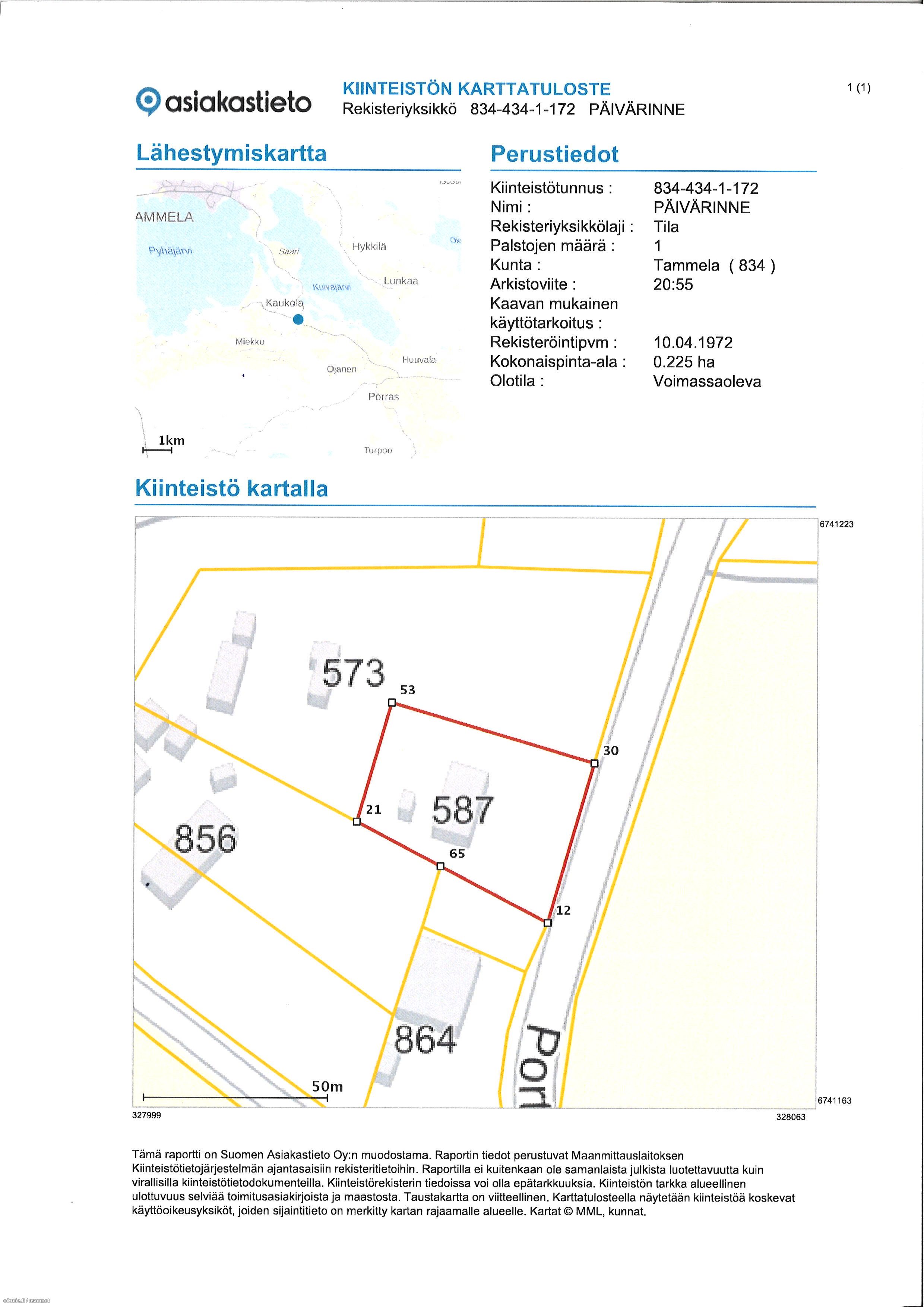 - Tammelan kunnan Saaren kylässä, Portaassa, yleiskaava-alueella. Lisätietoja Tammelan kunnalta.
