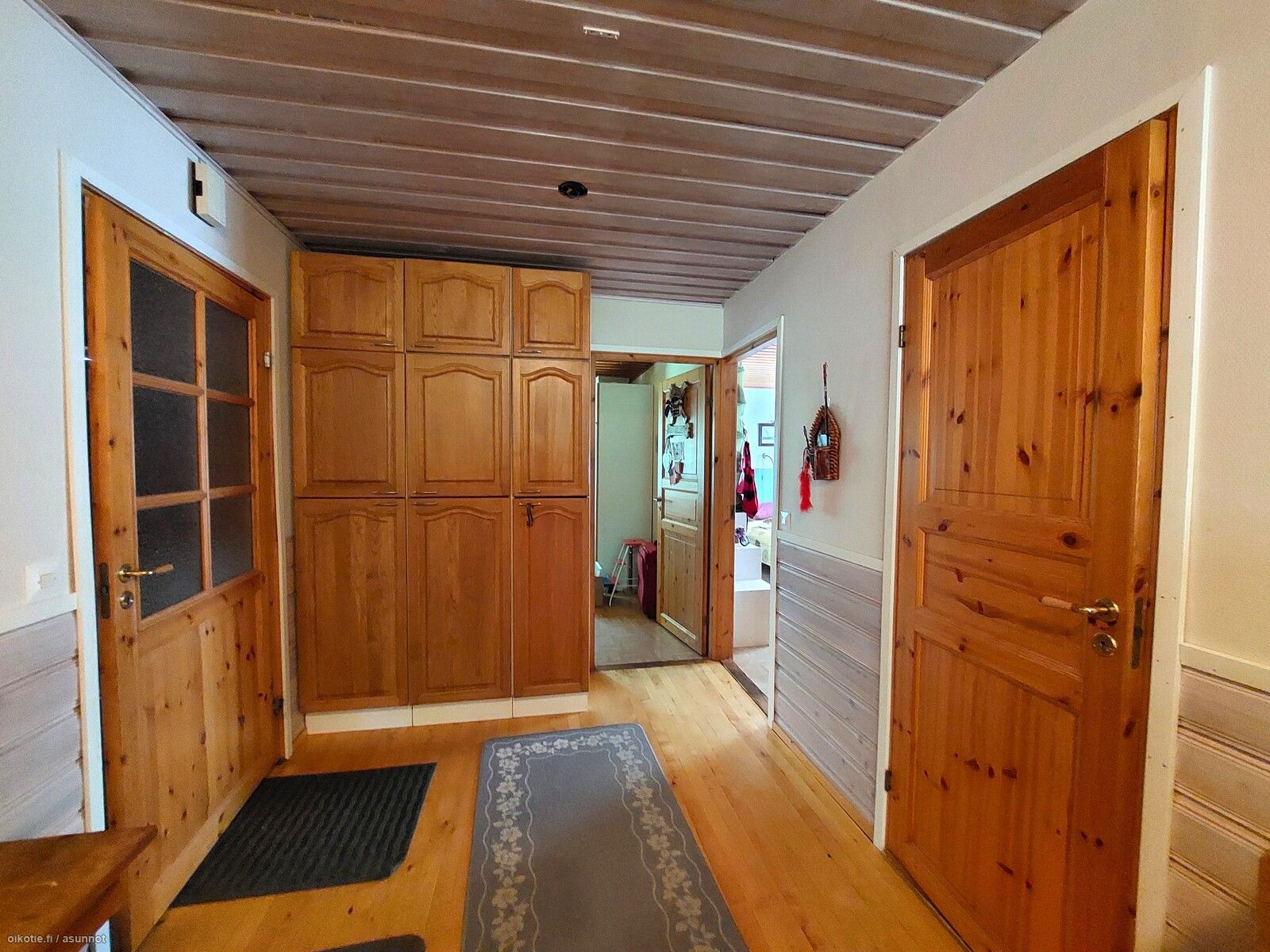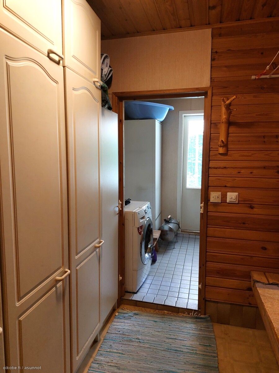 - Lattia: Keittiössä: lauta. Pesutiloissa: laatta. Erillisessä WC:ssä: laatta. Olohuoneessa: lauta. Saunassa: laatta. Seinät: Keittiössä: puu. Pesutiloissa: kaakeli. Erillisessä WC:ssä: tapetti. Olohuoneessa: puu. Saunassa: puu.