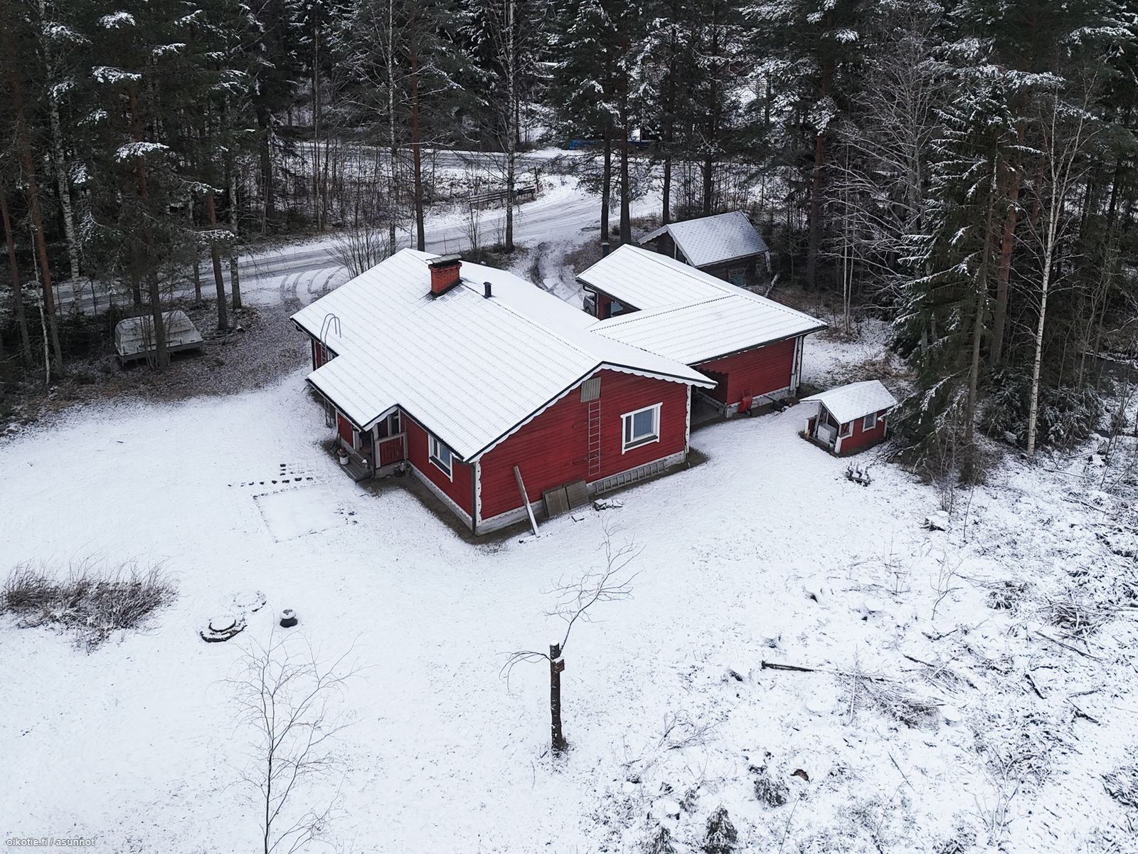 Tämä punainen puurakenteinen ja lautaverhoiltu omakotitalo sopii erinomaisesti pienen perheen kodiksi. Rakennus sijaitsee omalla 2000 m² tontilla, jonka lisäksi pihapiiristä löytyy autokatos/varasto sekä idyllinen hirsiaitta.