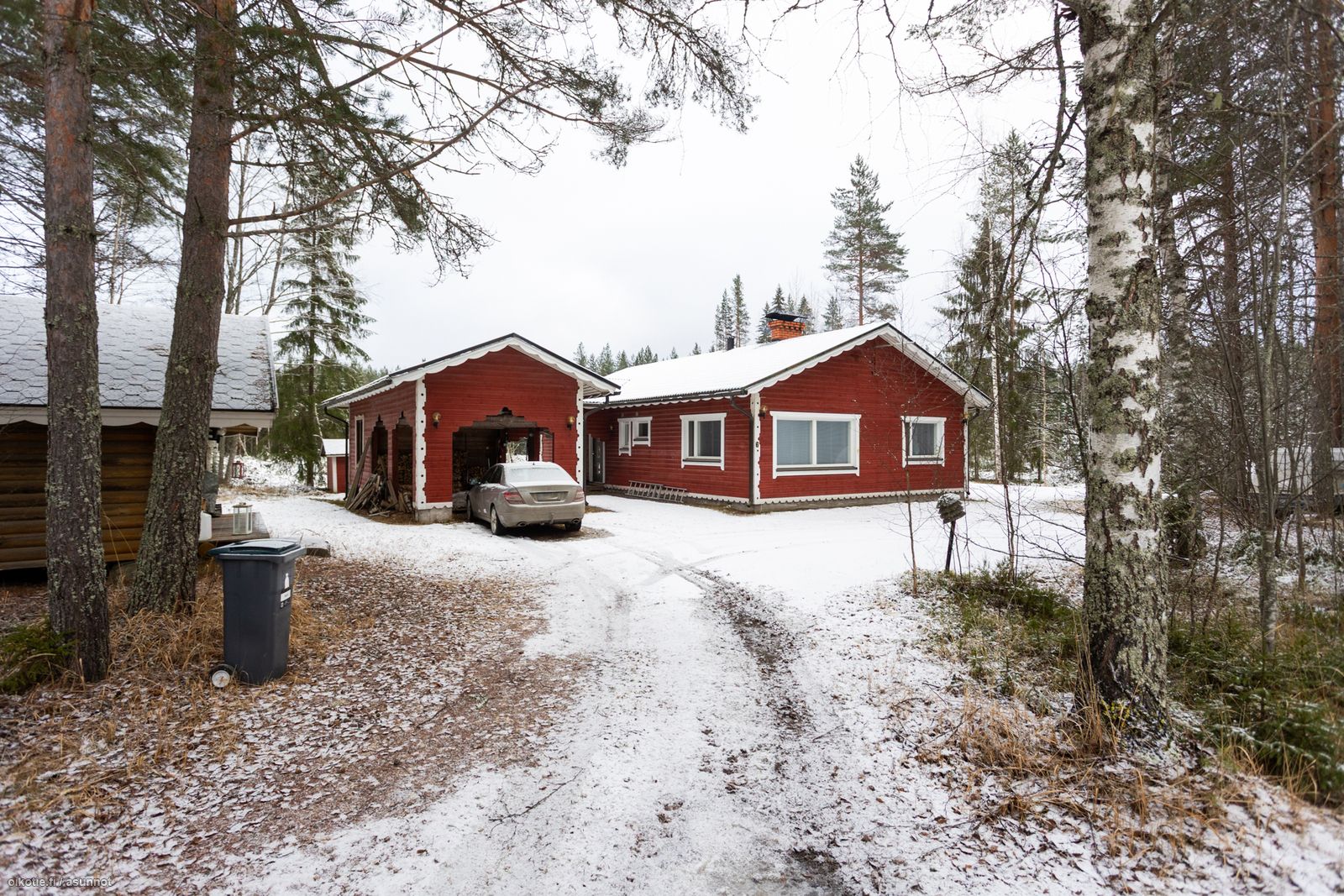 - Kuvaus: Autokatoksen jatkeena erillinen varasto sekä hirsiaittaa käytetty varastona.