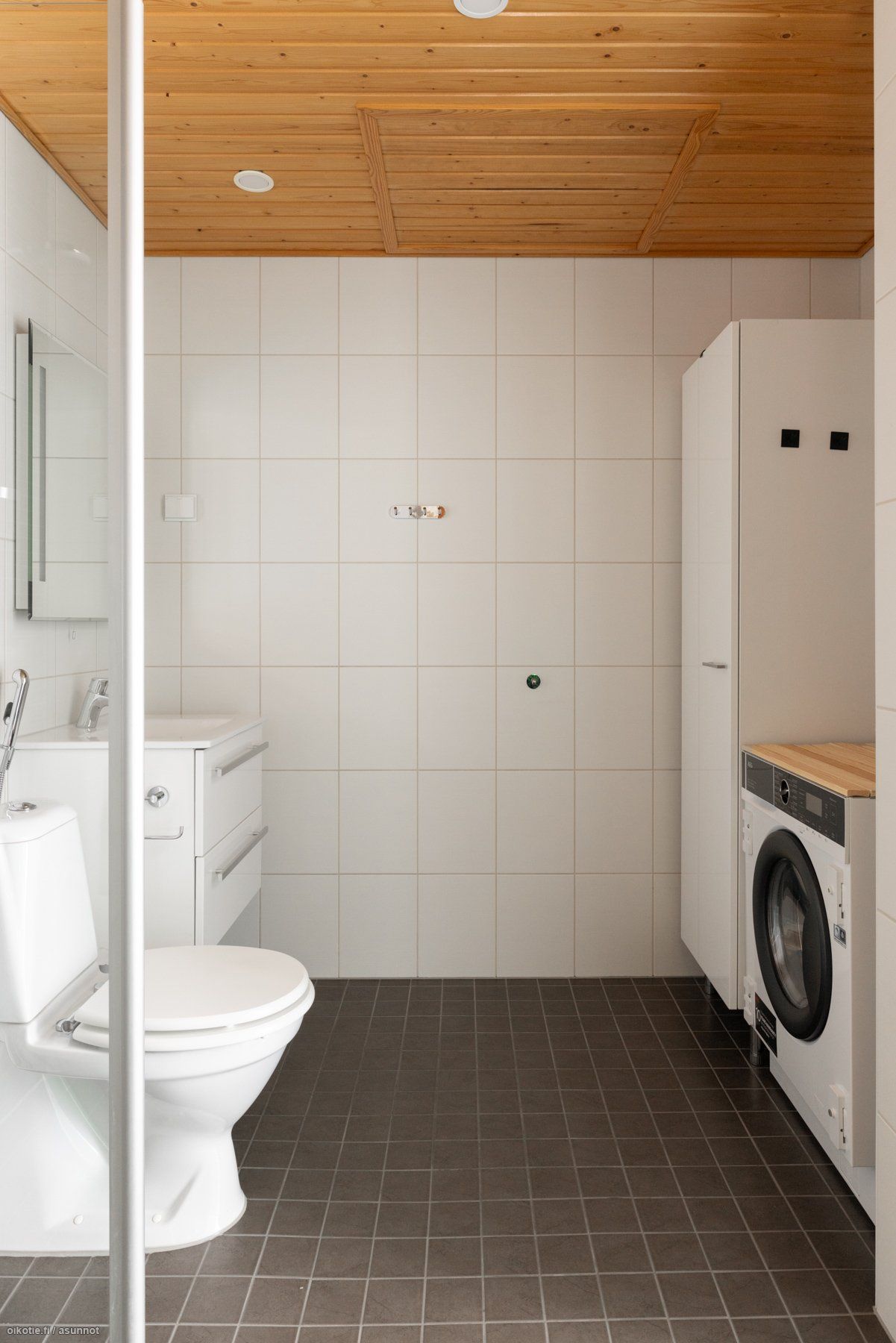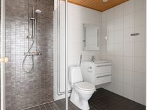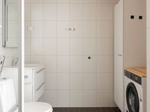 - Pesutilojen varusteet: Suihku, suihkuseinä, pesukoneliitäntä, peili, allaskaappi, bidee-suihku, wc-istuin ja lattialämmitys.