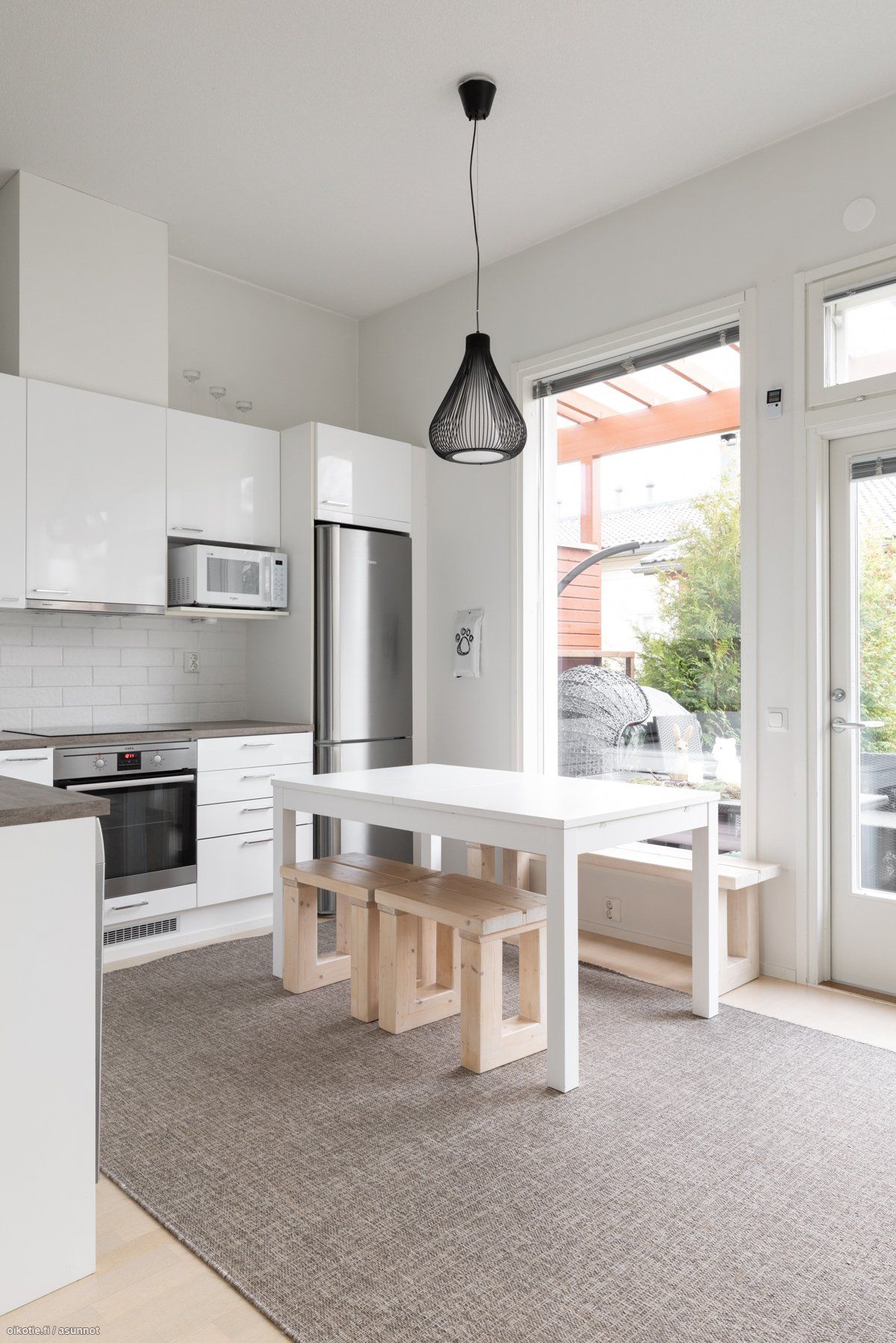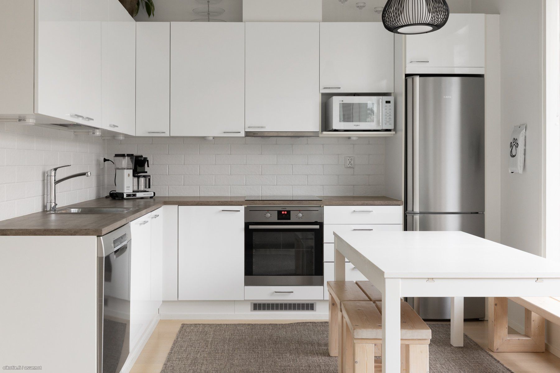 - Keittiön varusteet: Jääkaappipakastin, liesituuletin, liesi, uuni ja astianpesukone. Liesi: Induktioliesi.