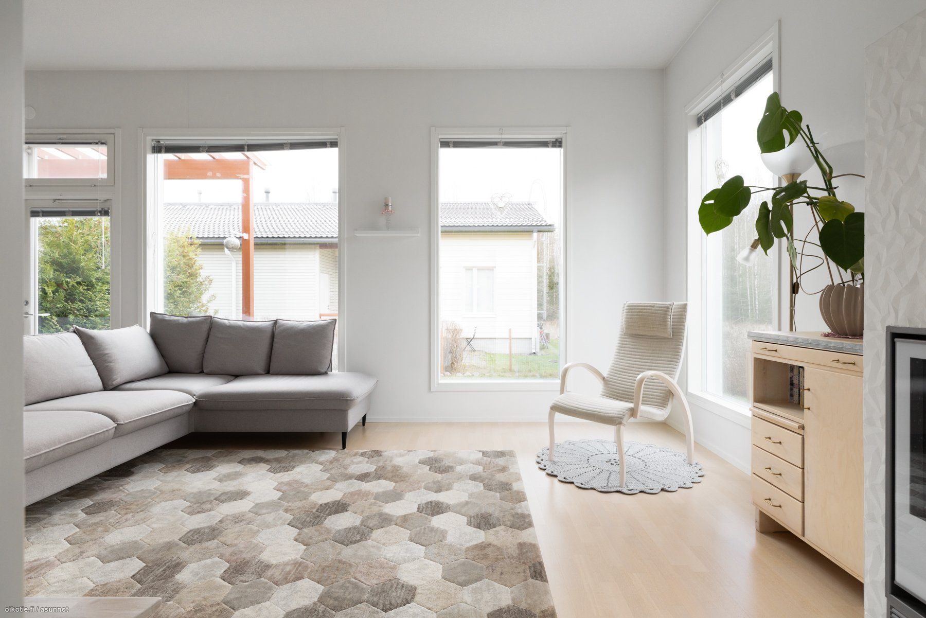 Tässä kodissa yhdistyvät toimiva arki, tunnelma ja harvinaisen suojaisa piha-alue. Tervetuloa ihastumaan paikan päälle!