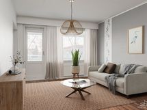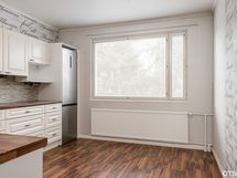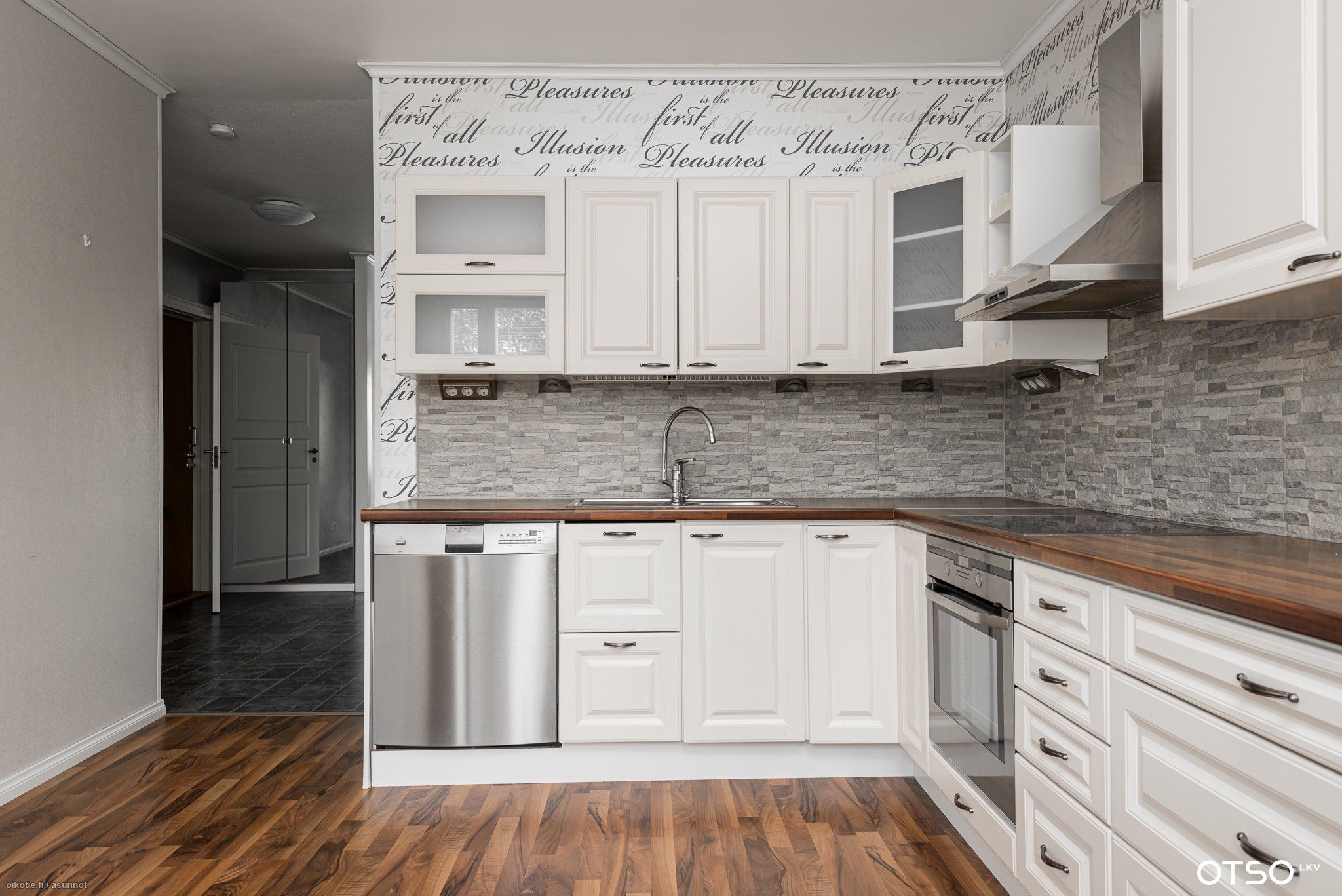 - Keittiön varusteet: Jääkaappipakastin, erillisuuni, liesi, liesituuletin ja astianpesukone. Liesi: Keraaminen liesi. Työtason materiaali: Laminaatti.