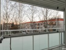 Lasitetulla parvekkeella kelpaa aamukahvista ja linnunlaulusta nauttia.