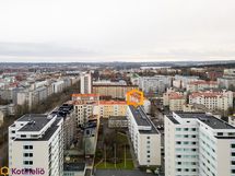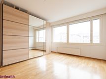 Tämä 5/6 kerroksen päätyasunto tarjoaa avarat ja valoisat huoneet sekä toimivan pohjaratkaisun. Makuuhuoneissa ja eteisessä on reilusti tilaa asumiseen ja säilytykseen, kylpyhuoneeseen mahtuu pesutorni ja erillinen wc lisää arjen sujuvuutta. Keittiössä on hyvin kaappi- ja työtilaa sekä paikka pienelle ruokapöydälle. Olohuoneesta on käynti lasitetulle parvekkeelle, joka tuo mukavasti lisätilaa ympäri vuoden.