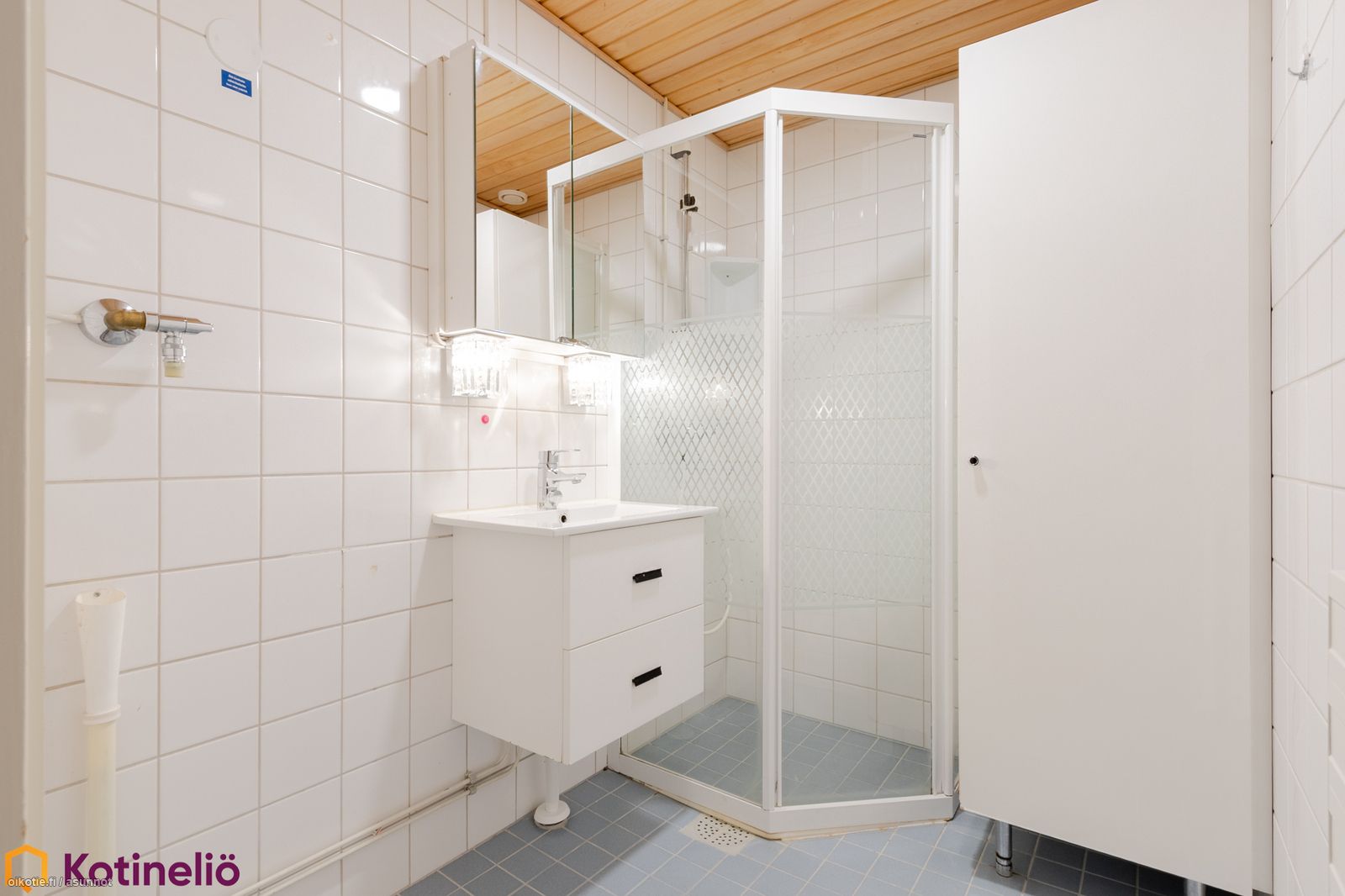 - Varustus: suihkukaappi, pesukoneliitäntä, suihku, peilikaappi, kiinteät valaisimet, kylpyhuonekaapisto. Varustus: peilikaappi, bidee-suihku.