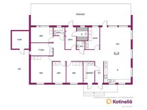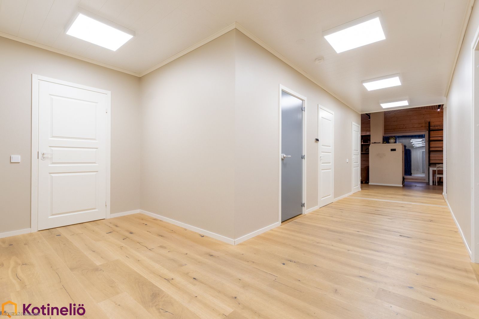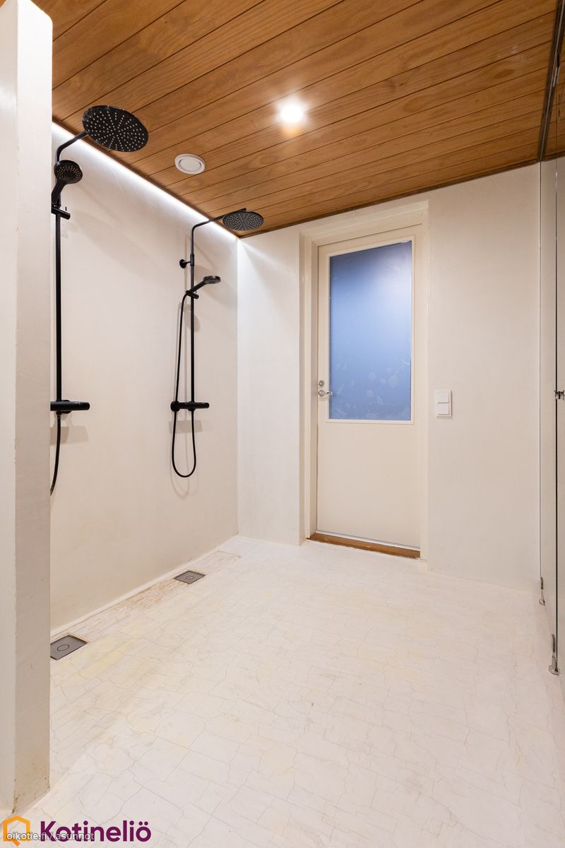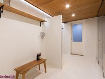 - Saunan yhteydessä on tilava pukuhuone. Talossa on eteinen sekä arkieteinen. Asunnon kaikissa tiloissa on vesikiertoinen lattialämmitys.