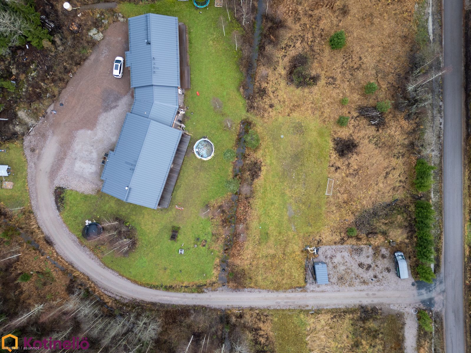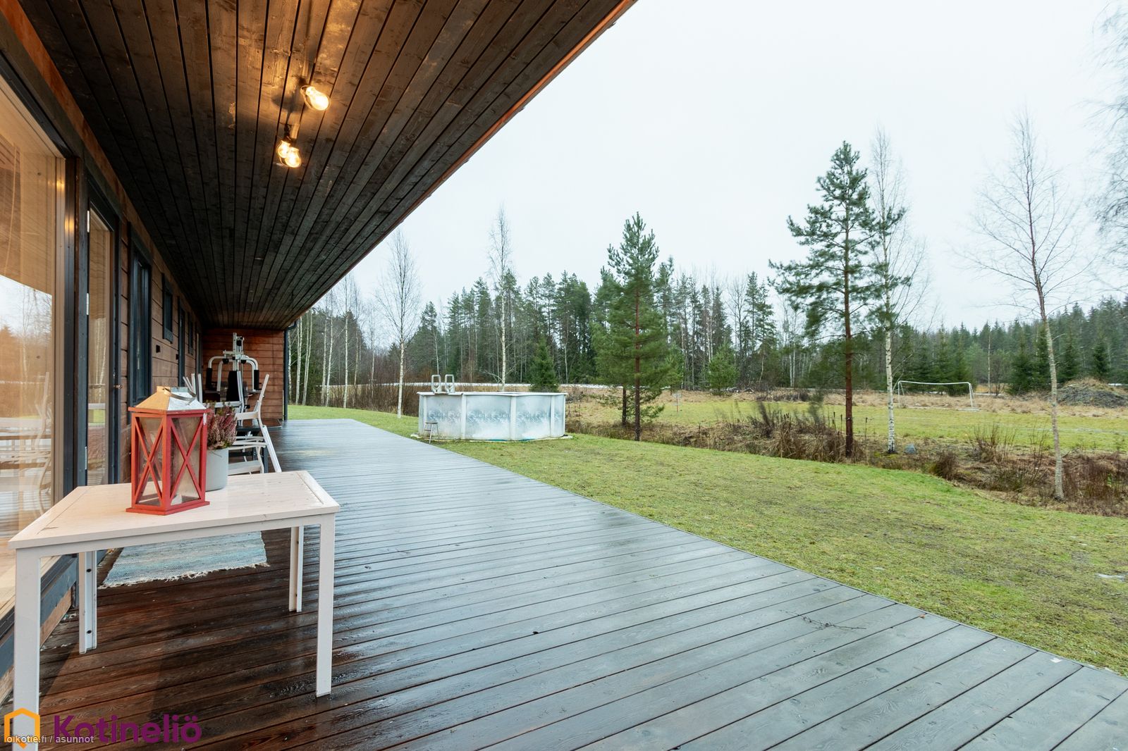 Talon eteläsivu avautuu koko rakennuksen mittaiselle terassille, pihaa on käytössäsi todella paljon. Tonttia on yhteensä 1,83 hehtaaria, ja hallinnanjakosopimuksella on määritelty selkeät osuudet kummallekin kiinteistölle.