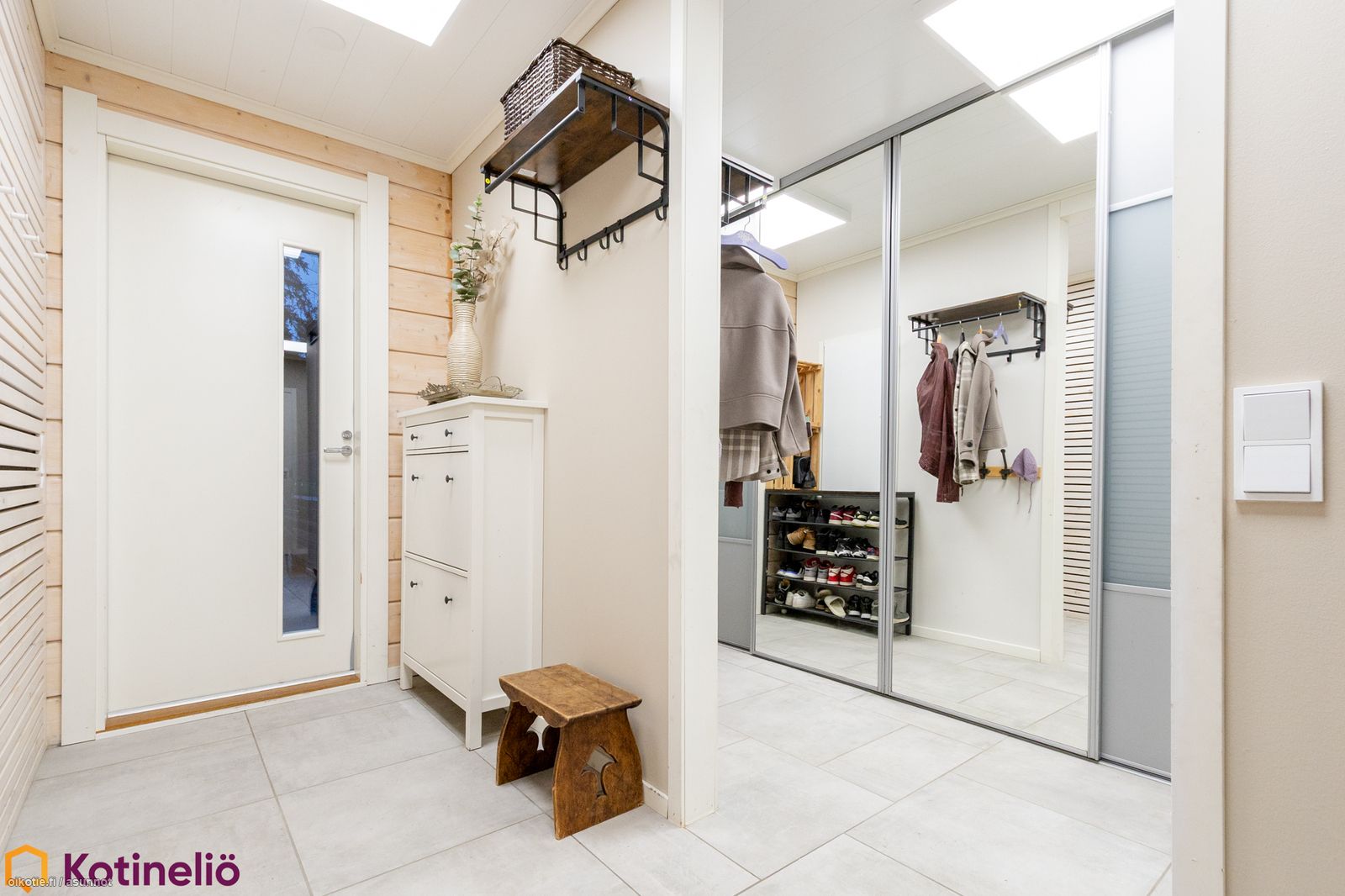 - Lattia: Keittiössä: parketti. Olohuoneessa: parketti. Makuuhuoneessa: parketti. Kodinhoitohuoneessa: laatta. Seinät: Keittiössä: maalattu, puu. Olohuoneessa: maalattu, puu. Makuuhuoneessa: maalattu, puu. Kodinhoitohuoneessa: maalattu, puu.