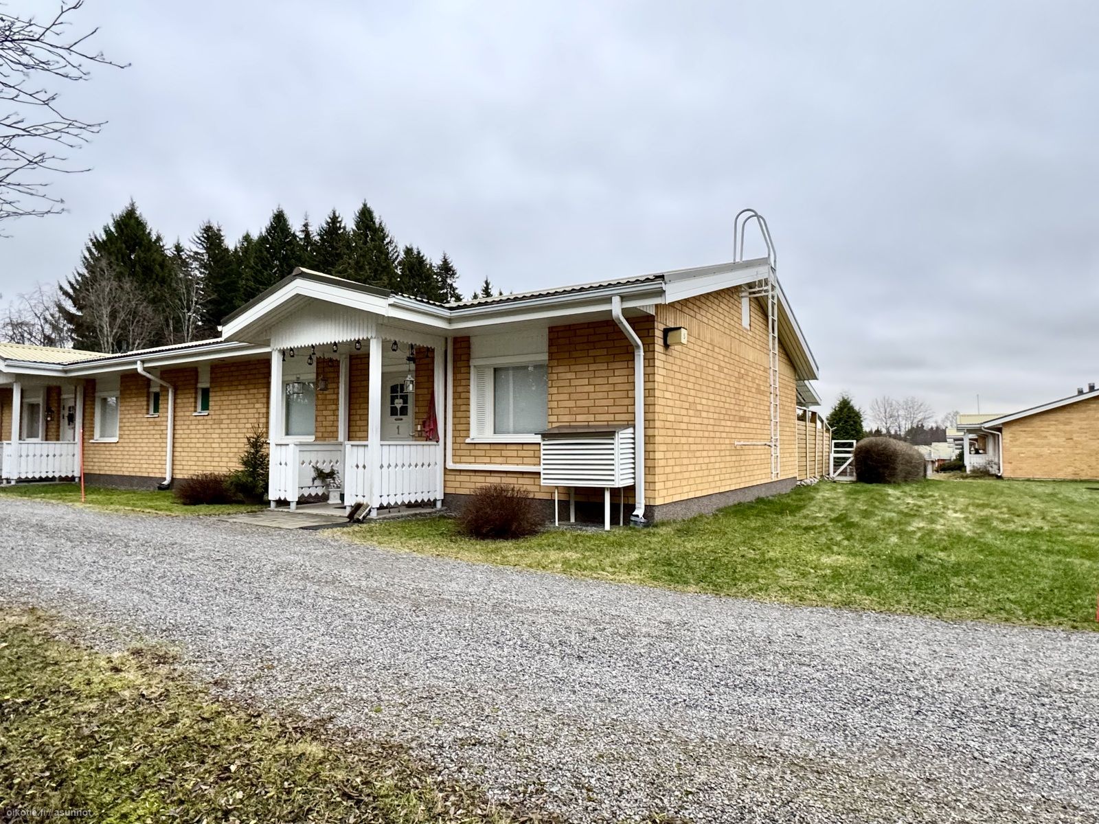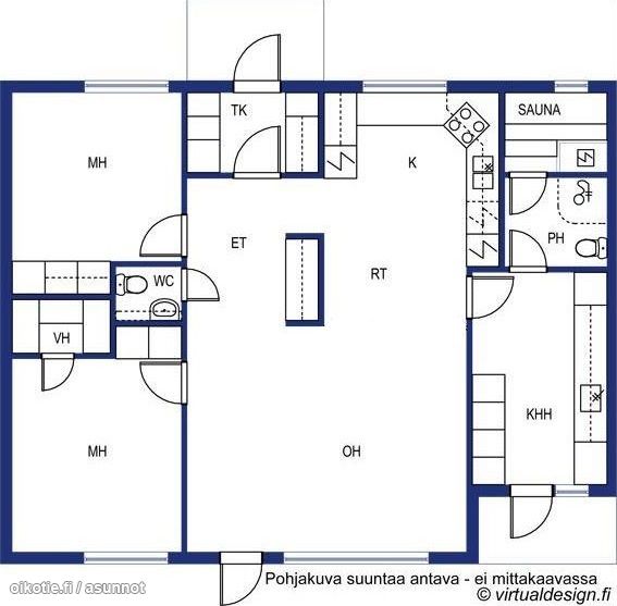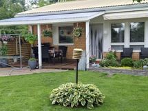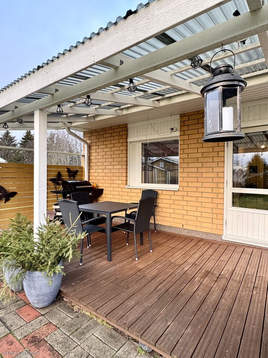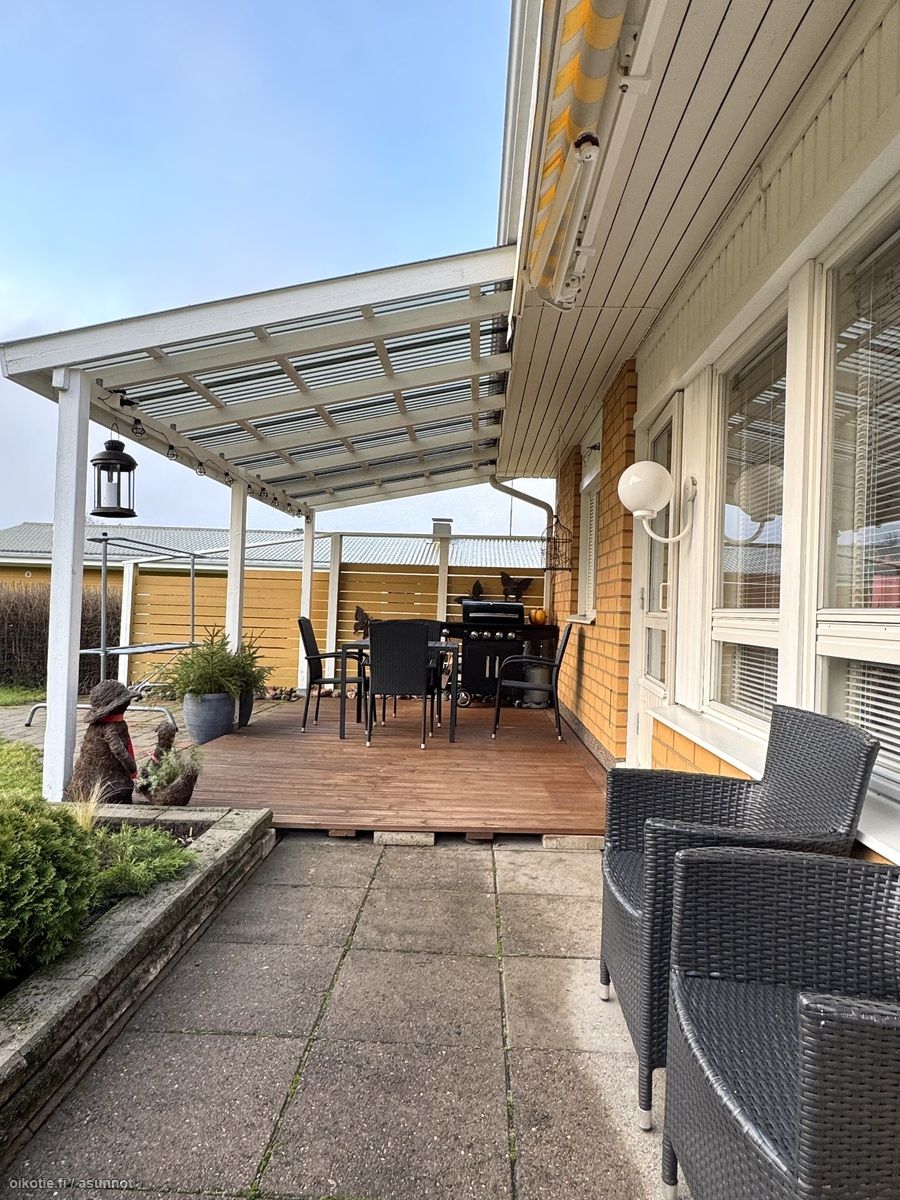 - Olohuoneesta, khh:sta ja toisesta makuuhuoneesta takapihalle, toinen mh ja keittiö etupihalle.