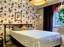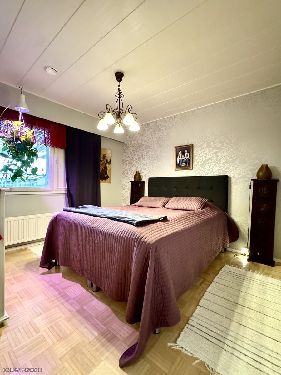 - Kaksi erillistä tilavaa makuuhuonetta. Lattia parkettia, seinät tapettia. Säilytykseen toisessa vaatehuone, toisessa kaapistot.
