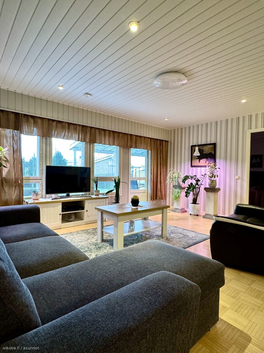 - Avara valoisa olohuone, josta isot ikkunat omalle takapihalle. Olohuone pintaremontoitu v. 2015. Lattia parkettia (hiottu ja lakattu v. 2015), seinät tapettia.