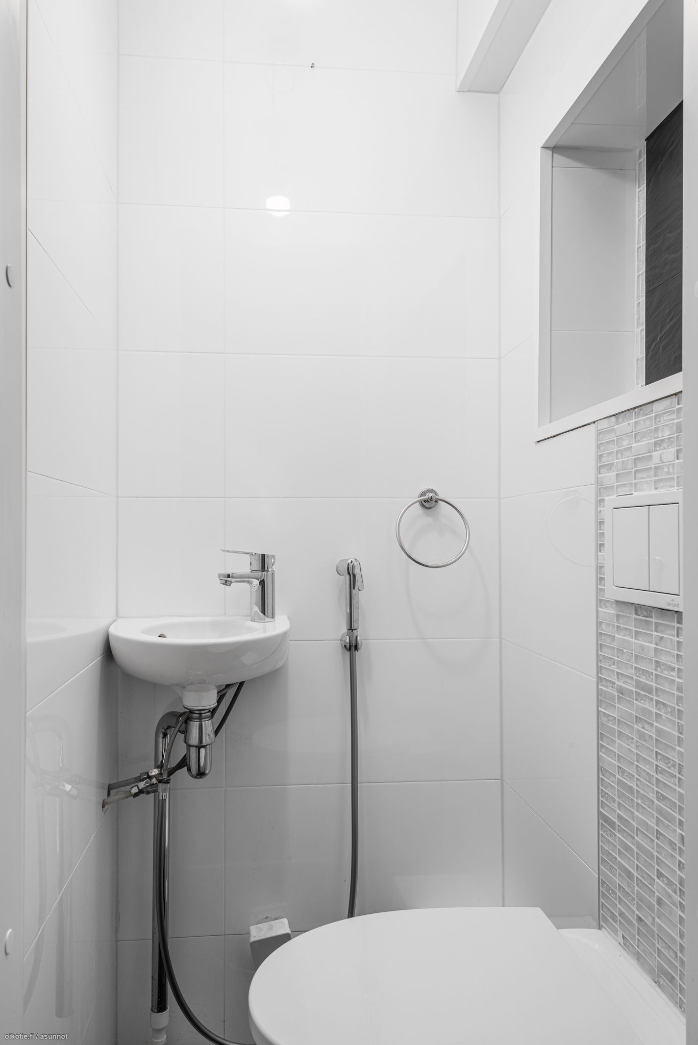 - Pesutilojen varusteet: WC-istuin, suihku, suihkuseinä, pesukoneliitäntä, lattialämmitys, pesuallas, allaskaappi ja bidee-suihku. Erillisten WC:n lukumäärä: 1. Erillisen WC:n varusteet: WC-istuin, pesuallas ja bidee-suihku.