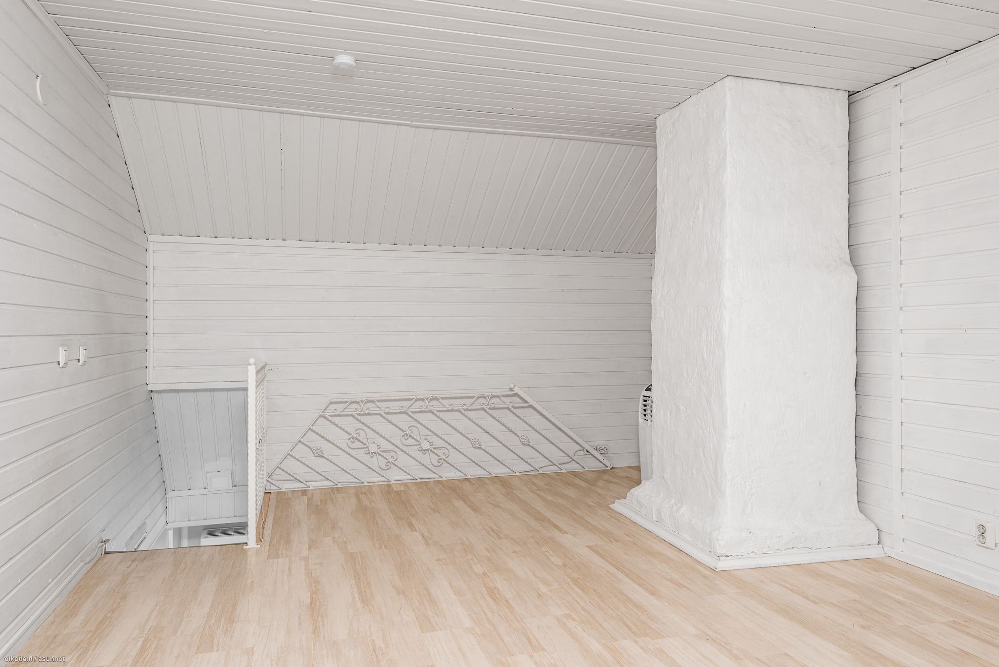 Olohuoneen kaunis tiilikuvioinen tehosteseinä ja toimiva takka luovat lämpimän ilmapiirin, jossa on mukava viettää aikaa. Keittiö on varusteltu nykyaikaisin kodinkonein, ja siellä on hyvät ja monipuoliset säilytystilat. Yläkerran makuuhuoneessa on laminaattilattia ja paneeliseinät, jotka tuovat luonnollista lämpöä tilaan.