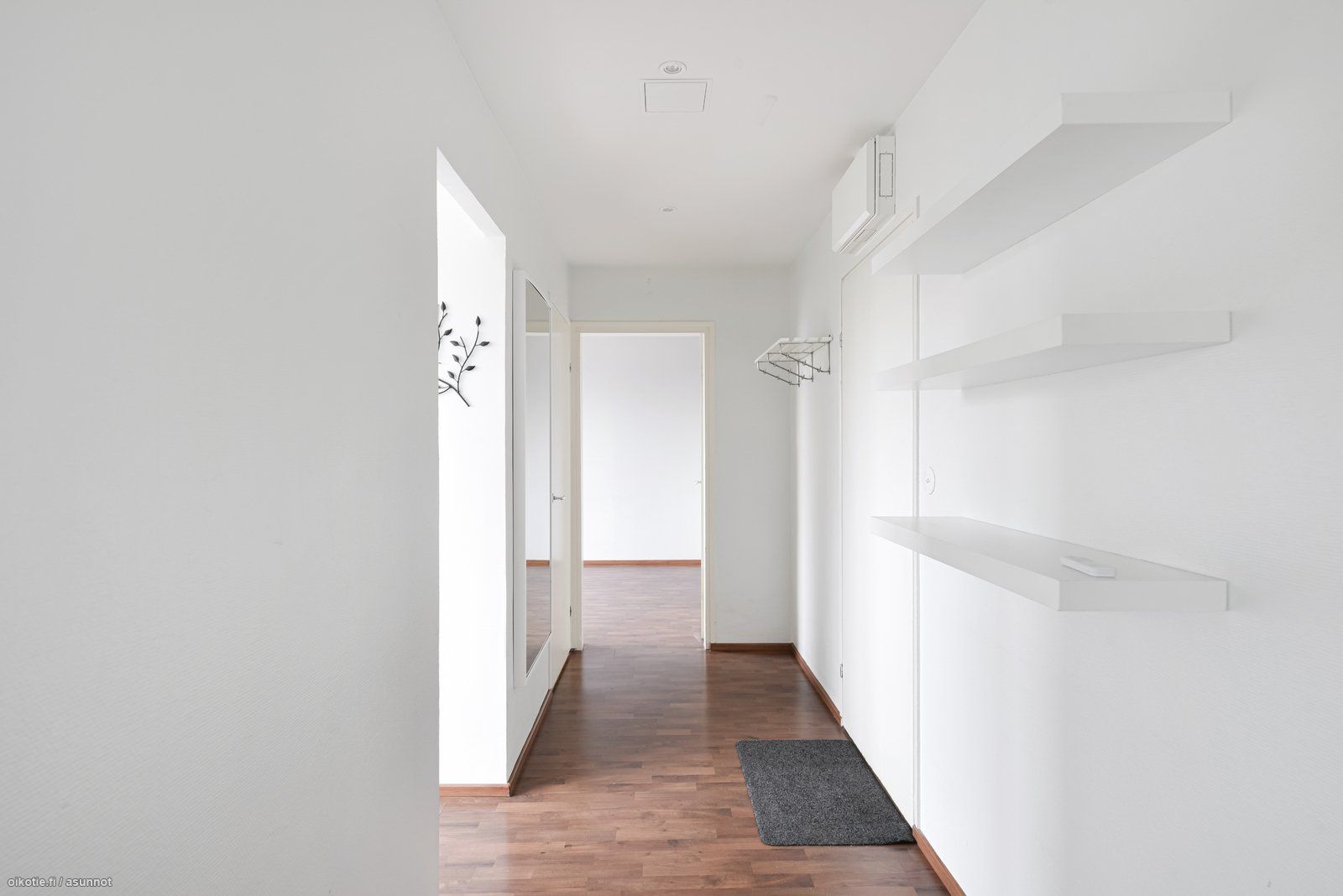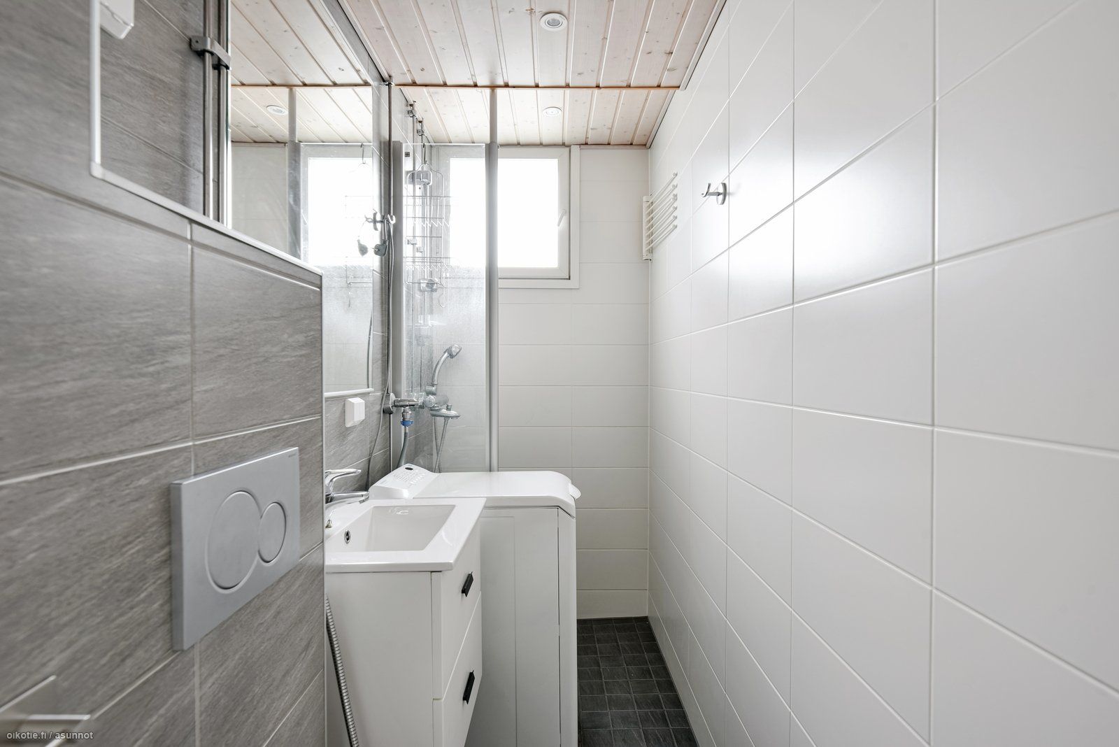 - Pesutilojen varusteet: WC-istuin, suihku, pesukoneliitäntä, lattialämmitys ja peilikaappi.