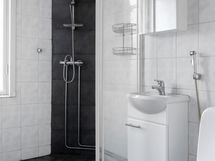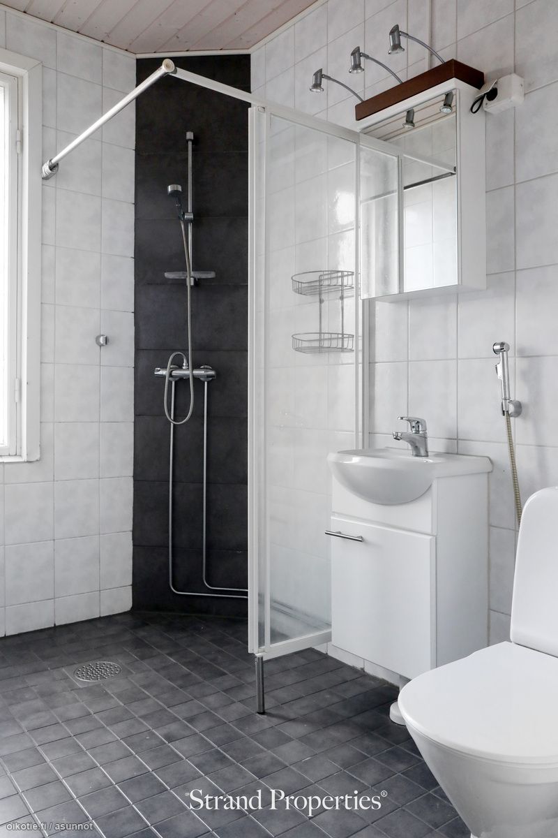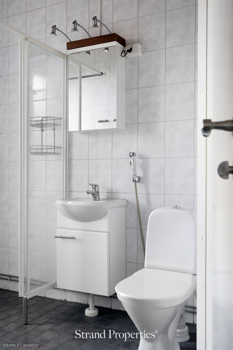 - Pesutilojen kuvaus: ikkuna ulos. Varustus: suihkuseinä, pesukoneliitäntä, lattialämmitys, wc-istuin, suihku, peilikaappi, kiinteät valaisimet, kylpyhuonekaapisto, asennettuja erikoisvarusteita.