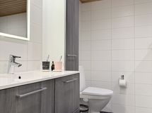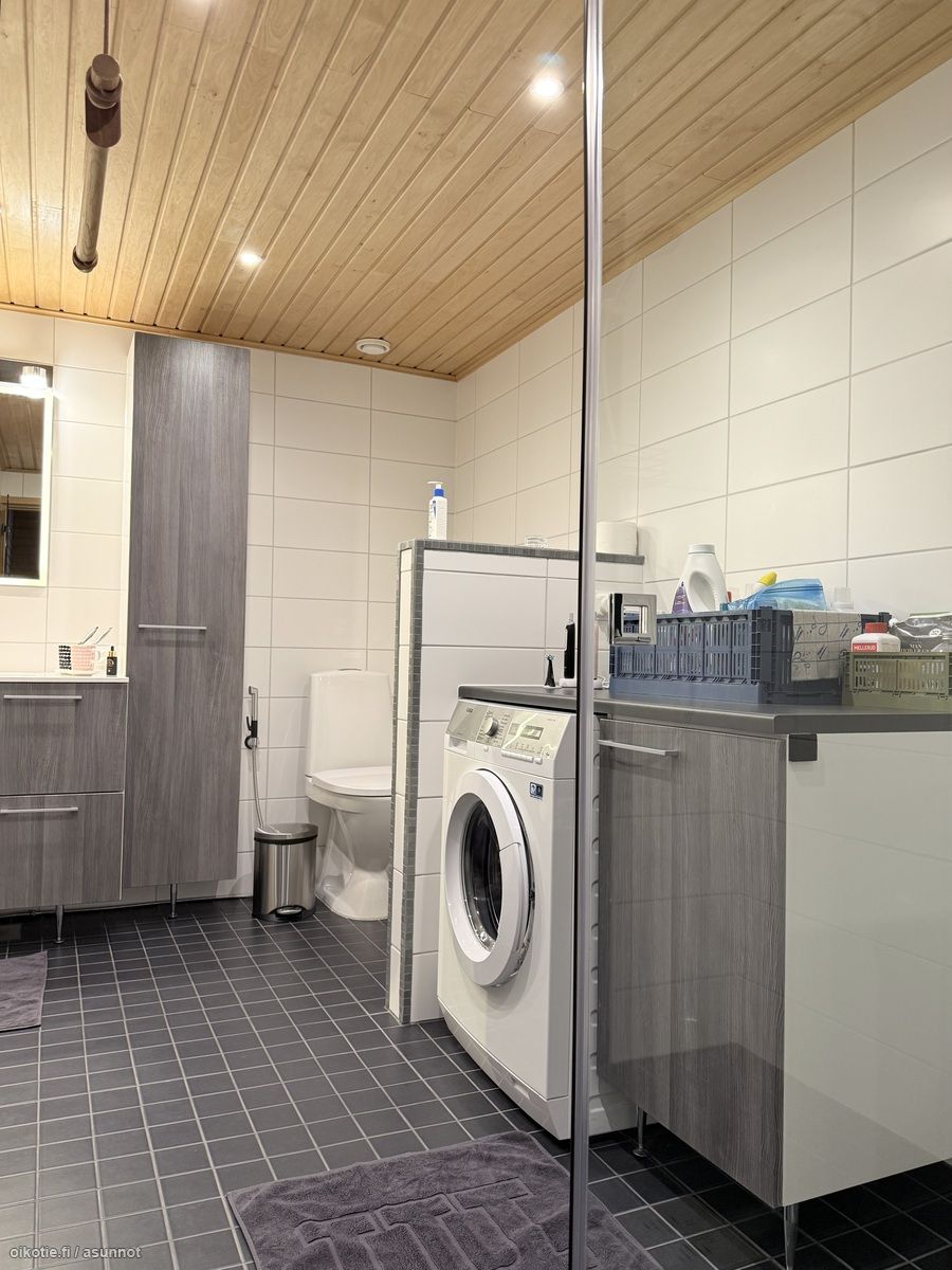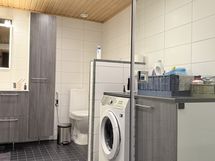 - Pesutilojen kuvaus: Vuonna 2015 remontoitu kylpyhuone, jossa kaakeloidut seinät ja laatoitettu lattia. Vesikiertoinen lattialämmitys. Suihku. Allaskaapisto, altaan yllä peili. Lisäksi kylpyhuonekaapisto. Pk-liitin. Pesukoneen päällä työtaso ja sivulla pyykkikaappi. Wc-toiminnot samassa tilassa.