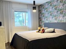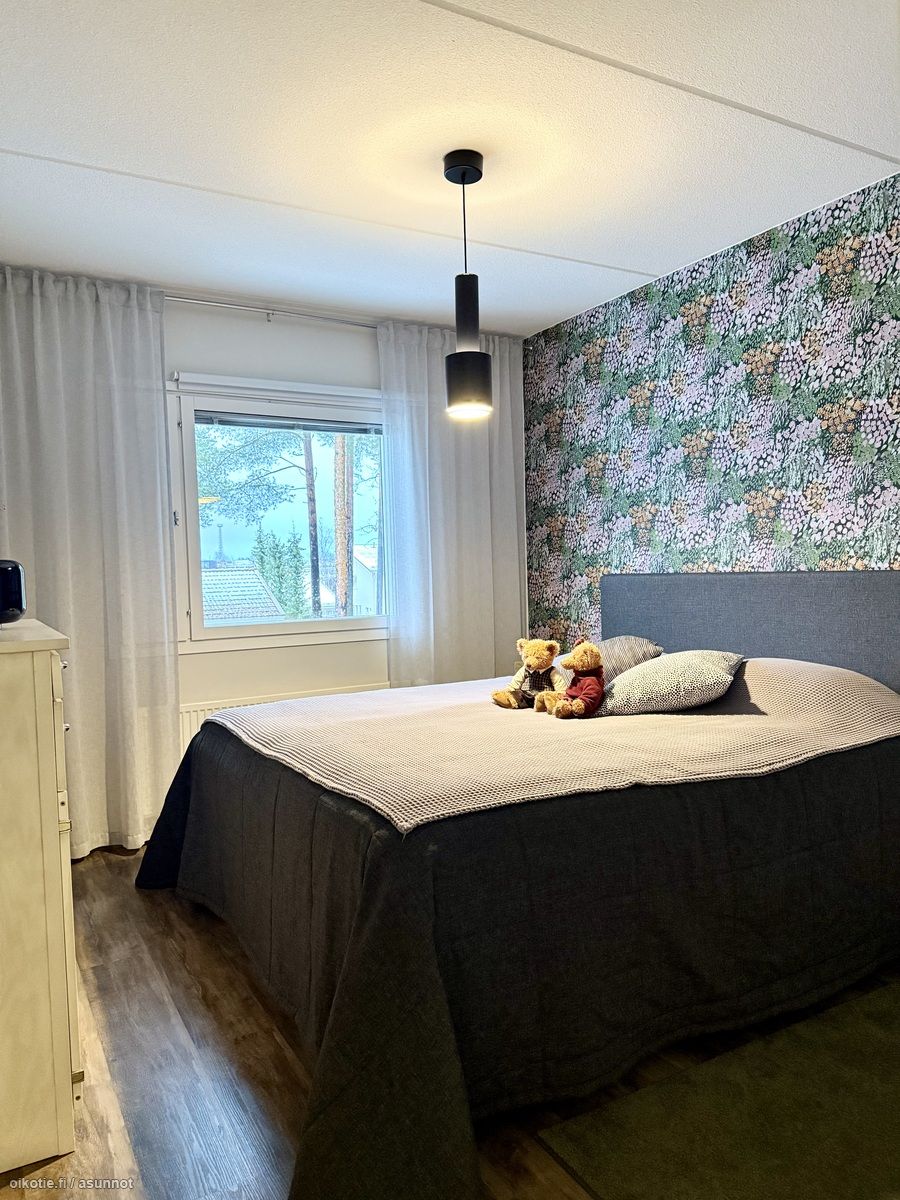 - Toisen makuuhuoneen kaikki seinät tapetoitu, lattia vinyylikorkkia. Yhdellä seinällä liukuovikaapistot. Toiseen makuuhuoneeseen käynti olohuoneesta (parilasiovet). Seinäpinnat osin tapetoitu, osin maalattu. Lattia vinyylikorkkia. Yhdellä seinällä koko huoneen leveydeltä liukuovikaapistoja.