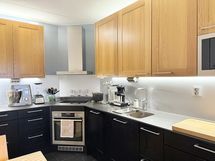 - Vuonna 2015 täysin remontoitu keittiö (remontissa uusittiin pinnat, kalusteet ja koneet). Seinäpinnat maalattu, lattia laatoitettu. Korona-keittiön kaapistot (alakaapistojen materiaali mustaksi sävytetty koivu, yläkaapit tammea). Varusteina: induktiotaso, erillisuuni, jääkaappi ja integroitu astianpesukone. Työtasot ovat erittäin kestävää 'keraamista kiveä'. Vuonna 2024 uusittu pakastinkaappi on sijoitettu eteisen liukuovikaapistoon.