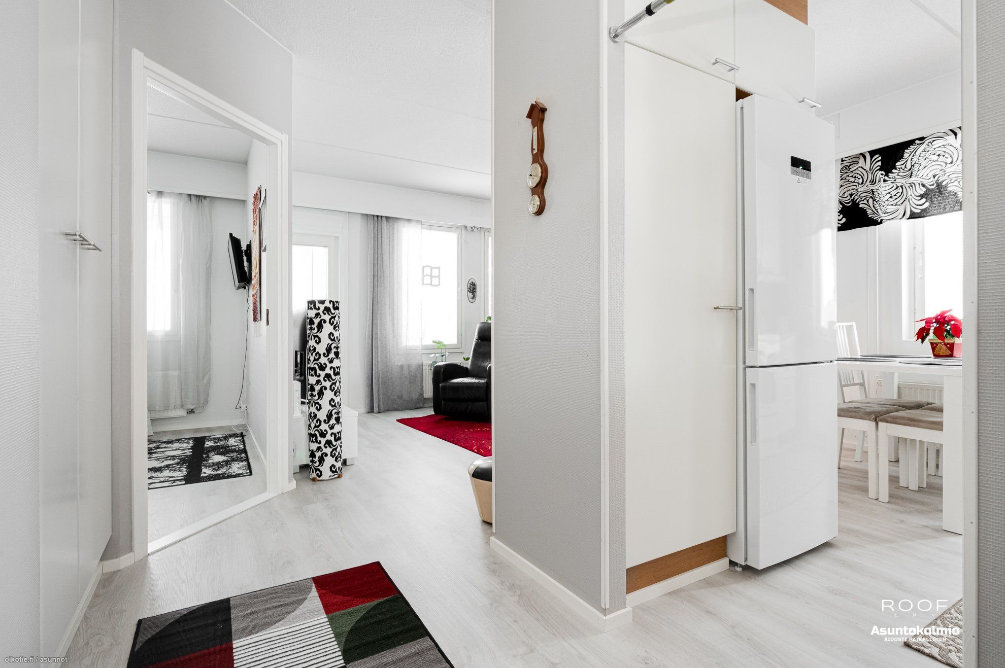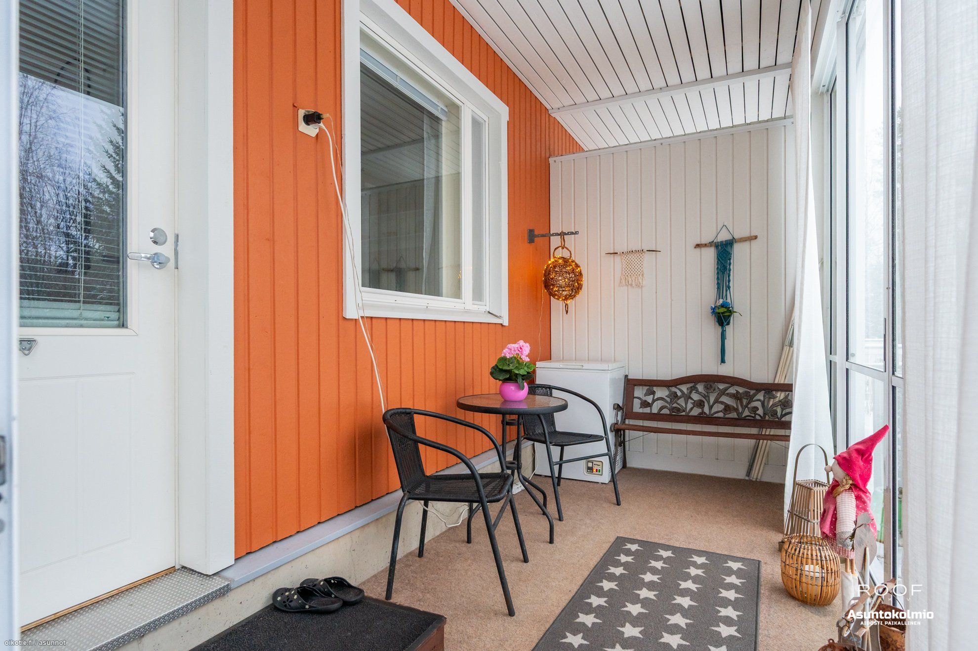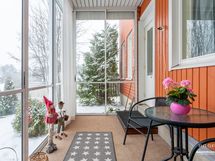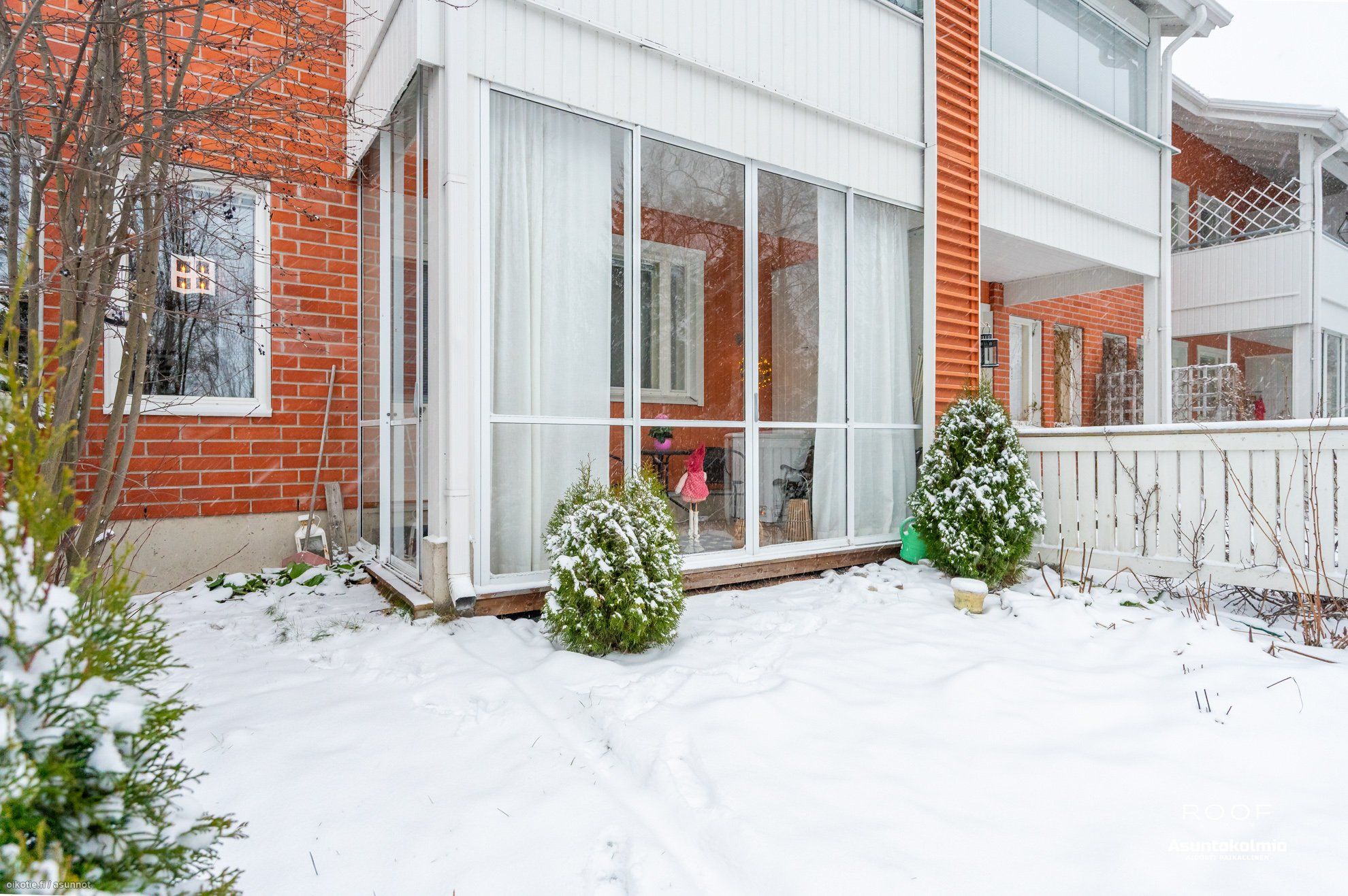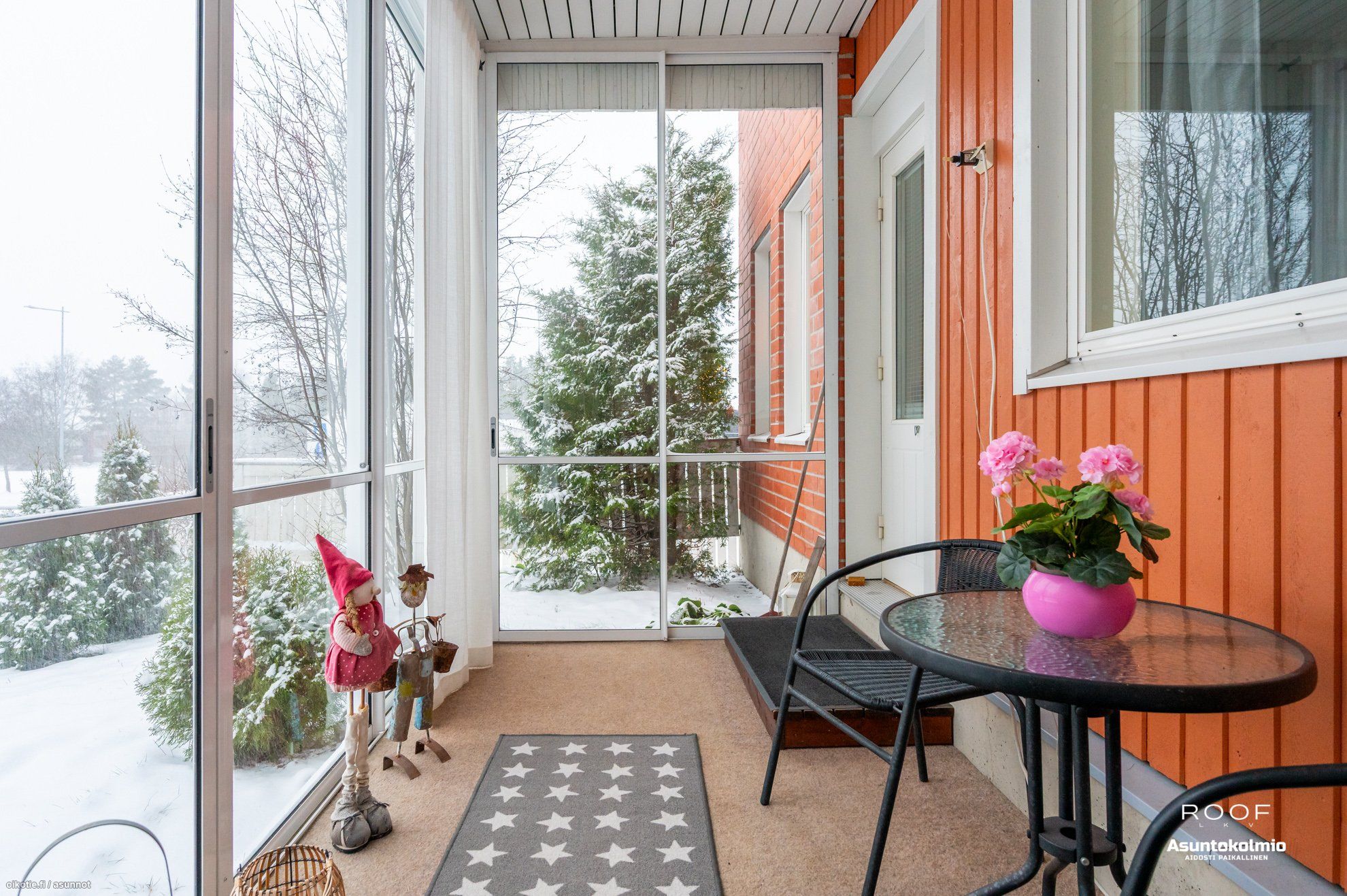 Kompaktista ja valoisasta kodista löytyy kaksi makuuhuonetta sekä tilava pesuhuone. Takapihan terassi on lasitettu, ja kesäisin takapiha on viihtyisän vehreä. Huoneiston asuintilojen lattiamateriaalit on juuri vaihdettu, ja huoneiston ilme on todella vaalea ja raikas.