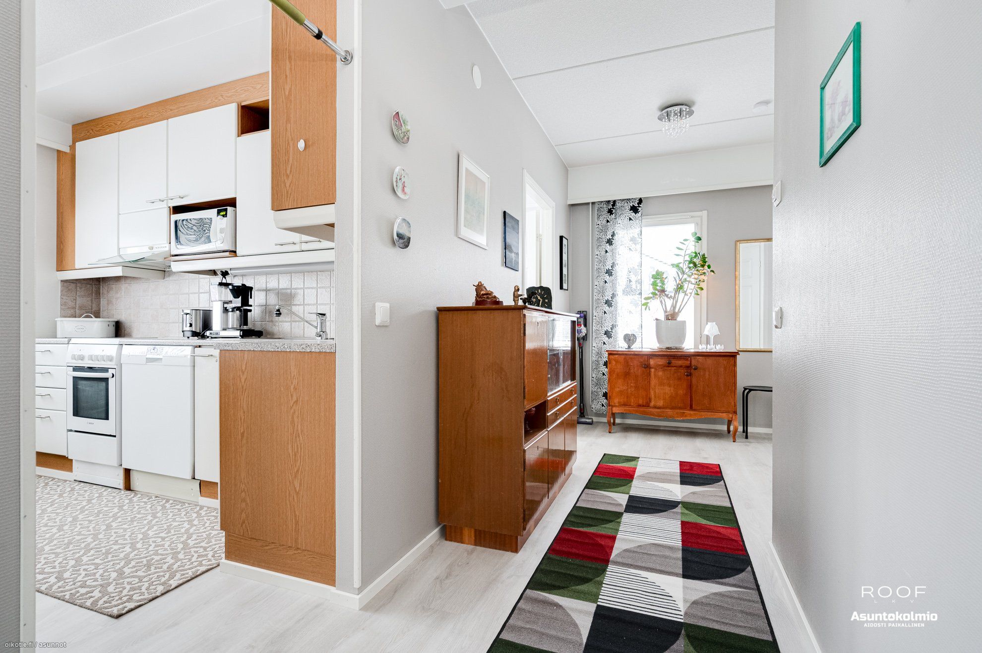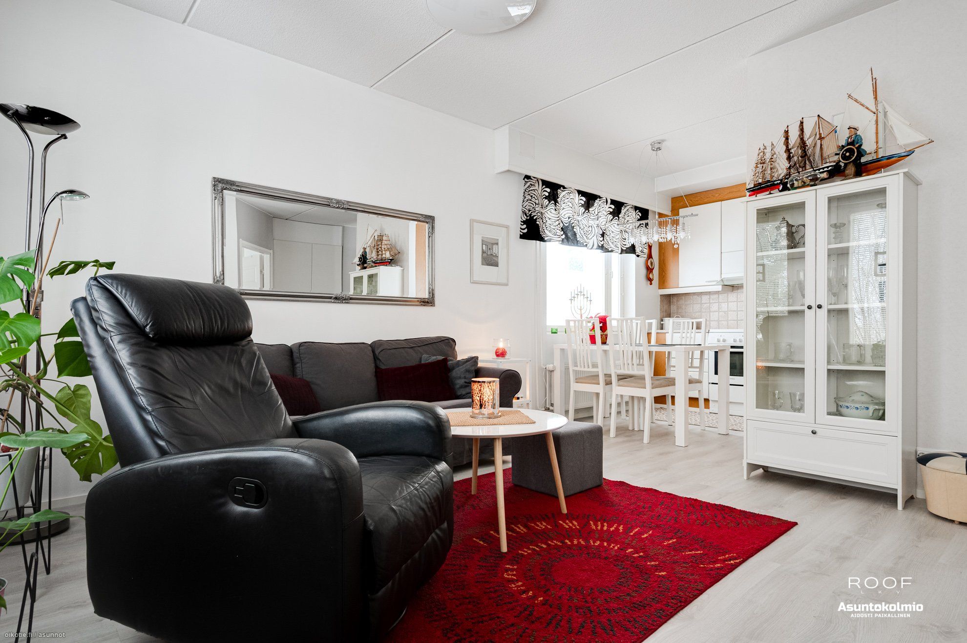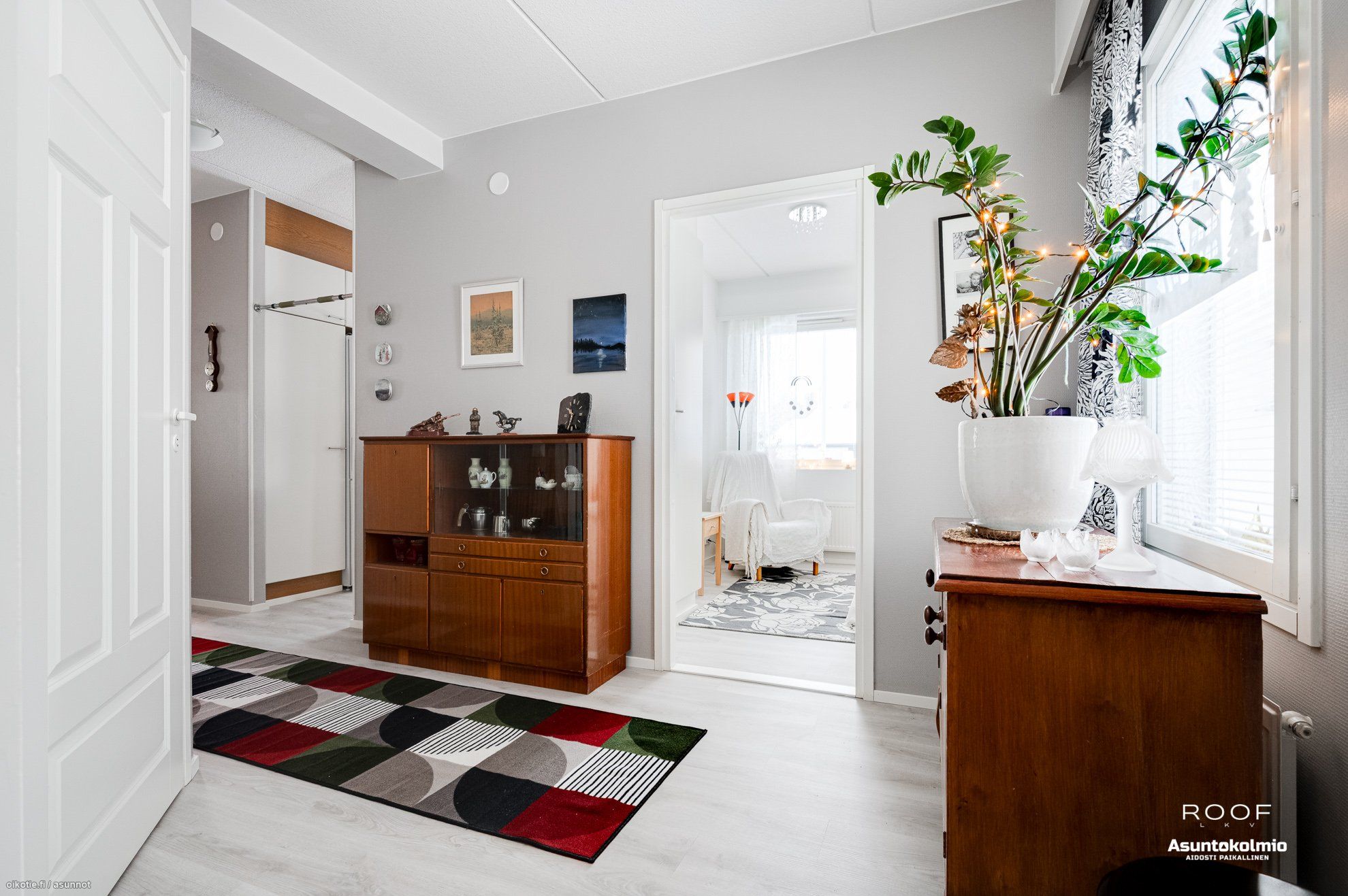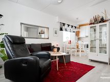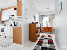 Kompaktista ja valoisasta kodista löytyy kaksi makuuhuonetta sekä tilava pesuhuone. Takapihan terassi on lasitettu, ja kesäisin takapiha on viihtyisän vehreä. Huoneiston asuintilojen lattiamateriaalit on juuri vaihdettu, ja huoneiston ilme on todella vaalea ja raikas.