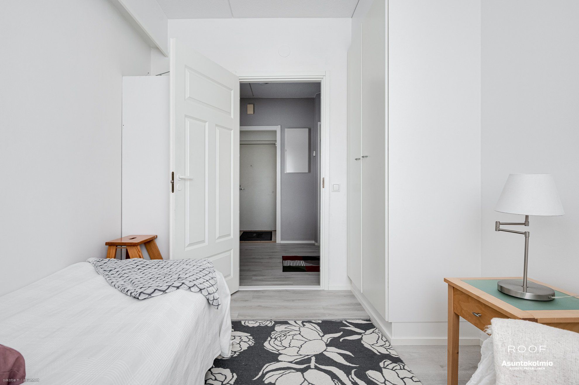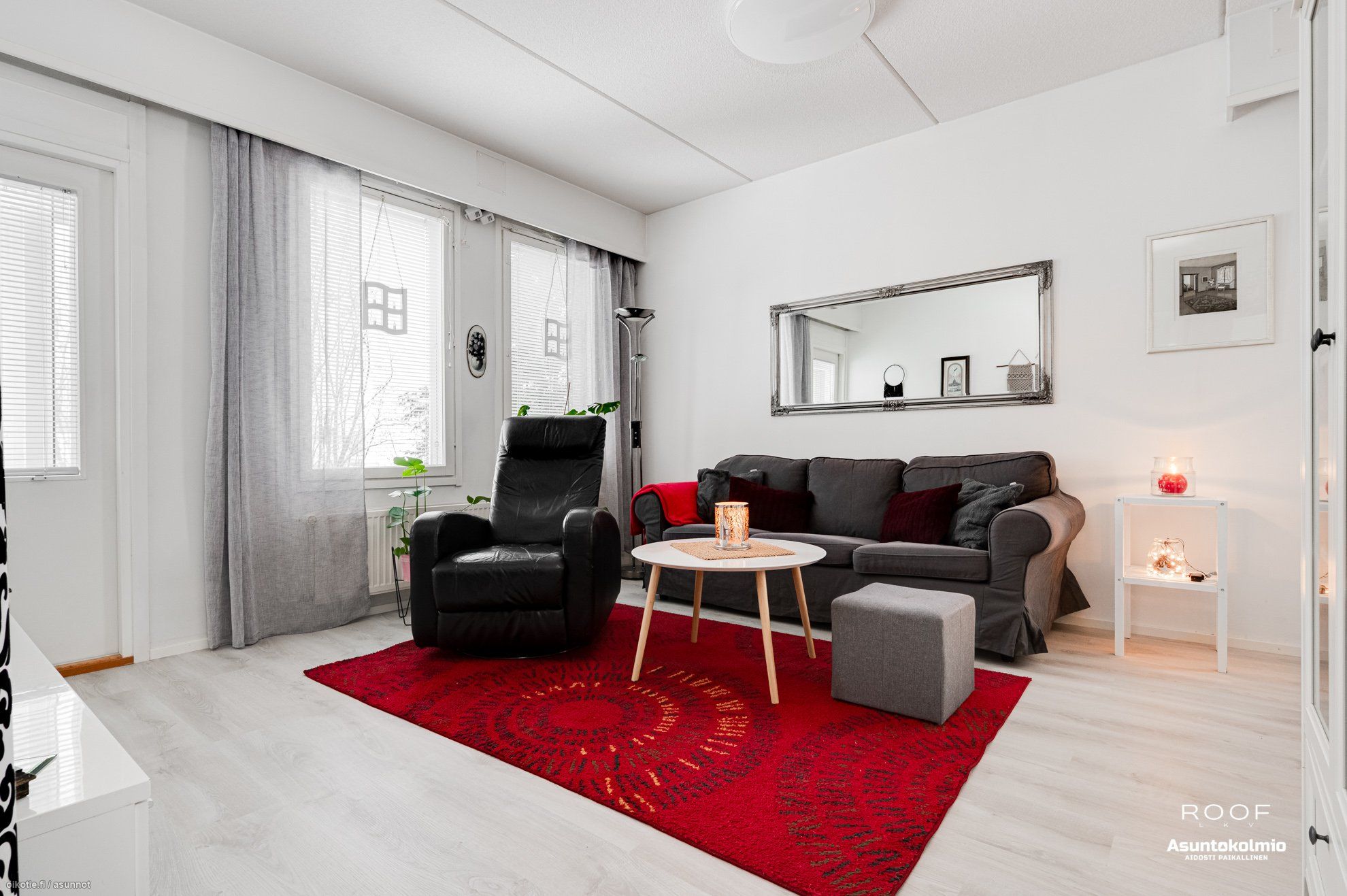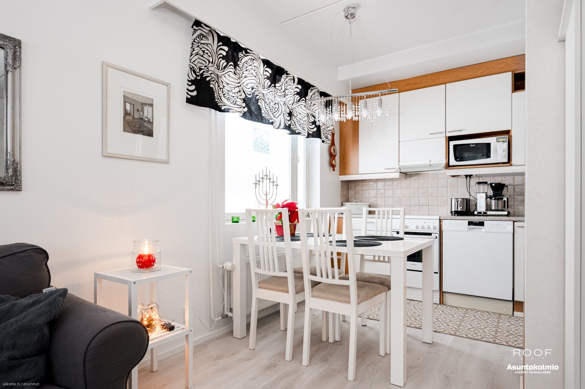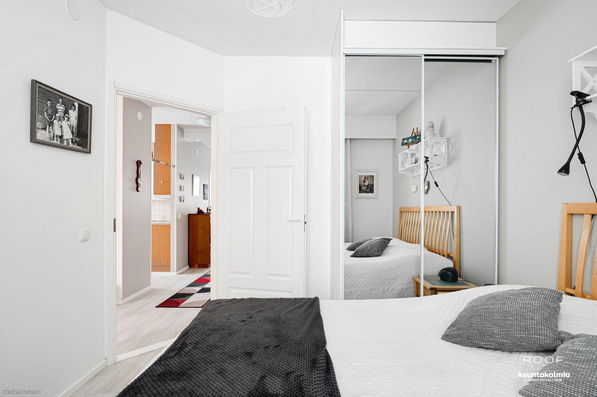Kompaktista ja valoisasta kodista löytyy kaksi makuuhuonetta sekä tilava pesuhuone. Takapihan terassi on lasitettu, ja kesäisin takapiha on viihtyisän vehreä. Huoneiston asuintilojen lattiamateriaalit on juuri vaihdettu, ja huoneiston ilme on todella vaalea ja raikas.