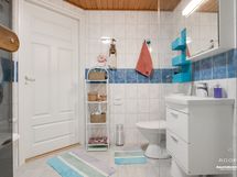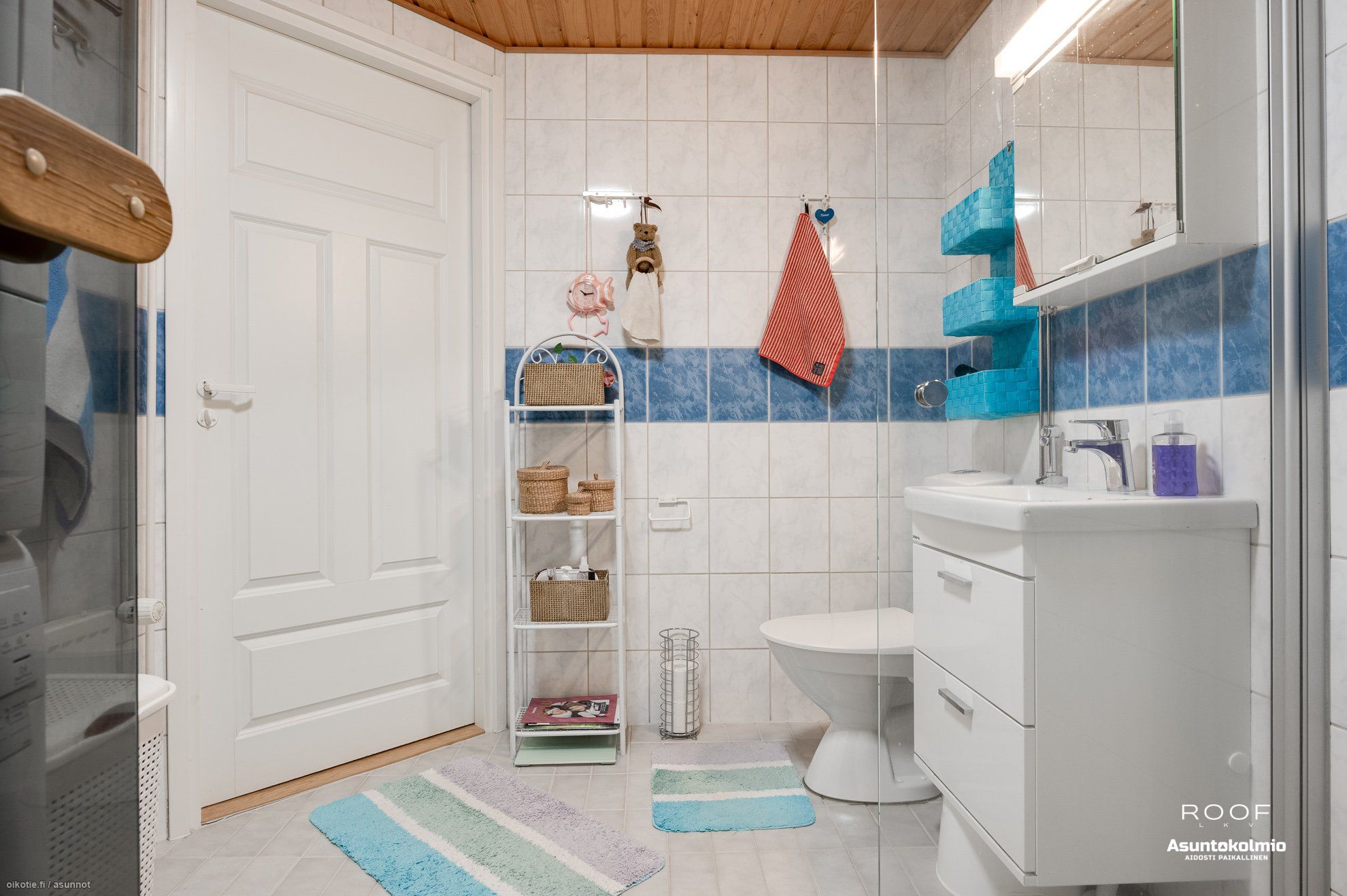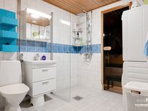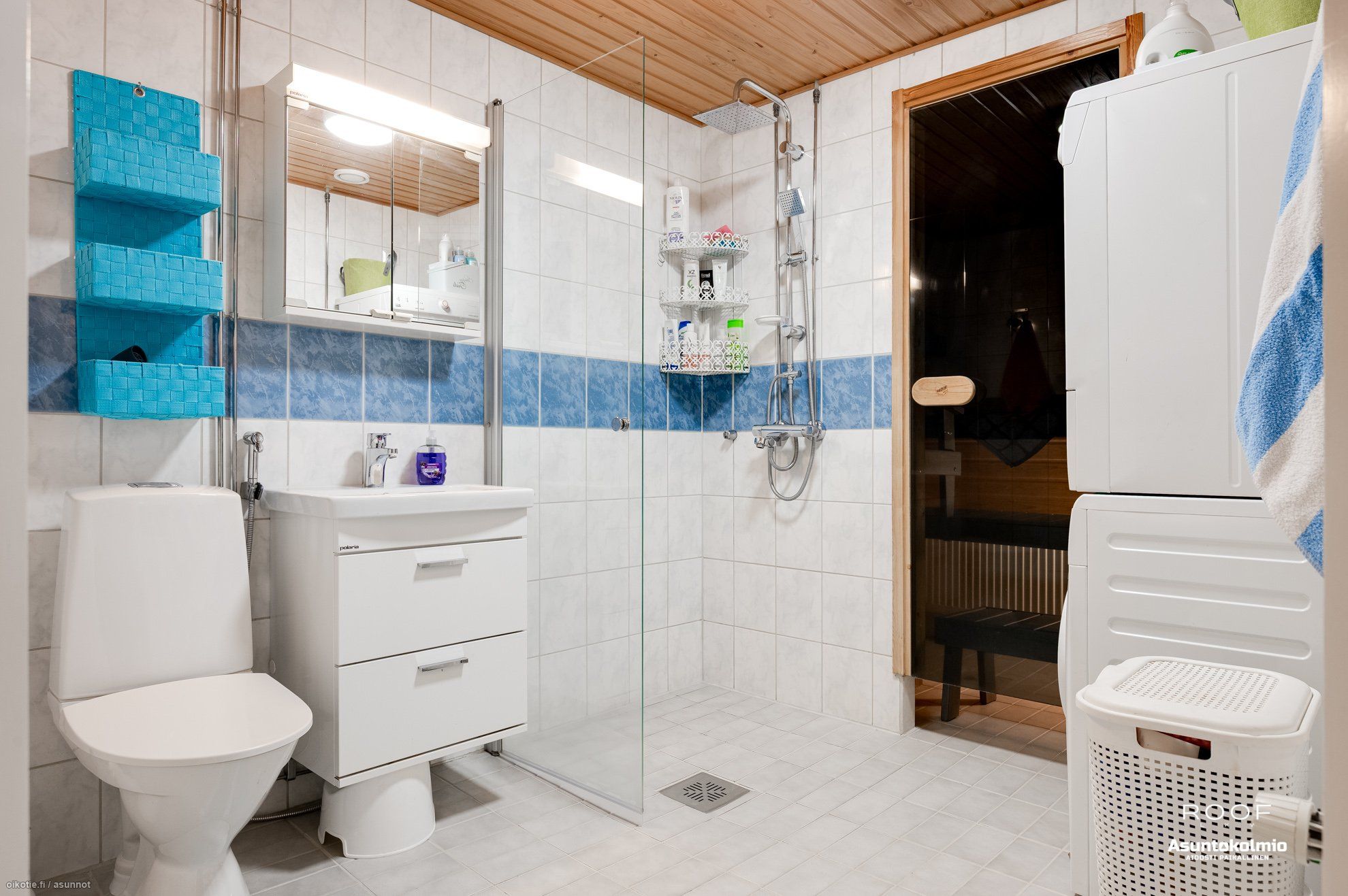 - Pesutilojen varusteet: WC-istuin, peilikaappi, pesuallas, allaskaappi, bidee-suihku, suihku, suihkuseinä, pesukoneliitäntä ja lattialämmitys.