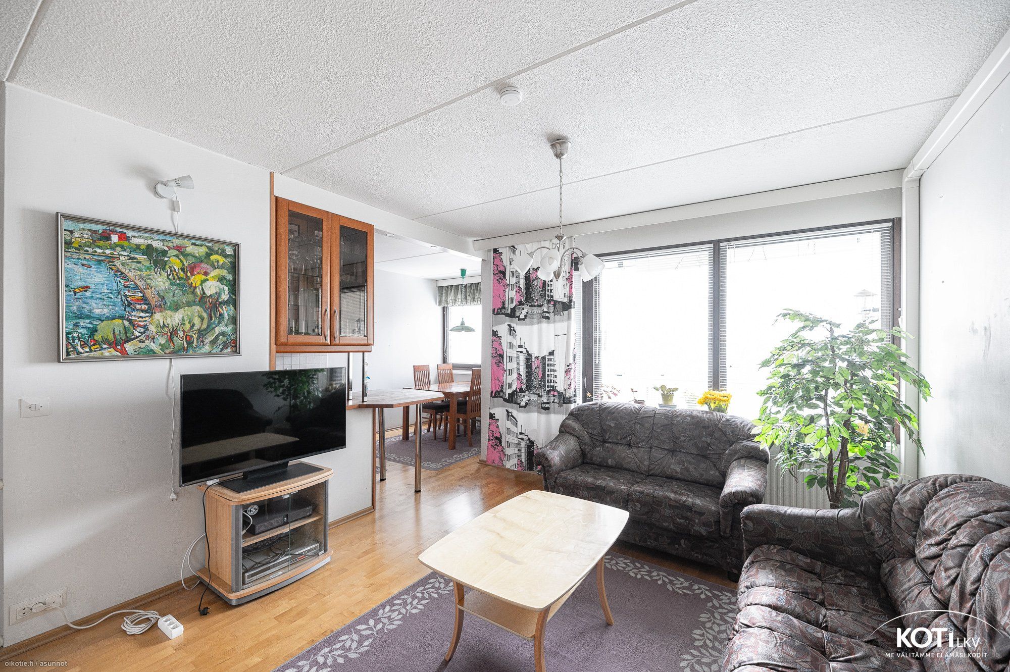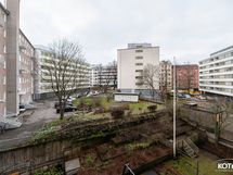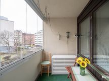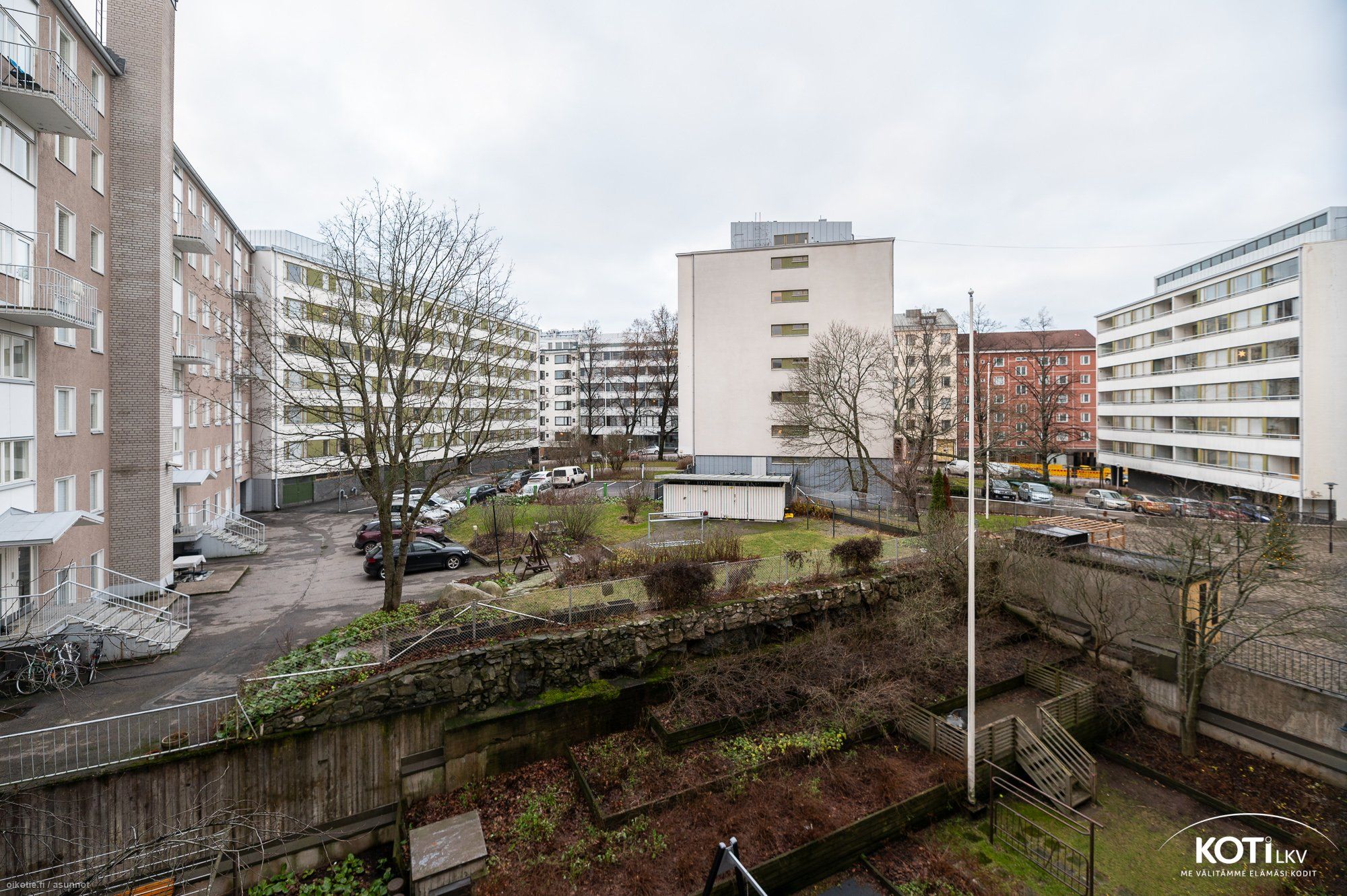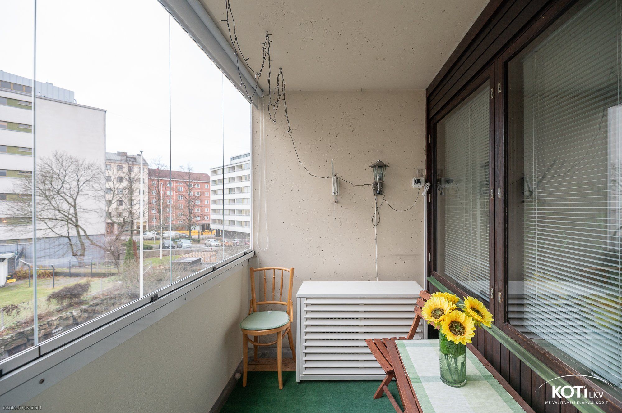 Asunto sijaitsee neljännessä kerroksessa, ja siitä avautuvat näkymät sisäpihalle ja kadulle. Olohuoneesta pääsee tilavalle lasitetulle parvekkeelle, joka tarjoaa mukavan lisätilan oleskeluun. Avokeittiössä on reilusti kaappi- ja laskutilaa, ja sen yhteydessä on ruokailutila, josta on rauhalliset näkymät sisäpihalle.