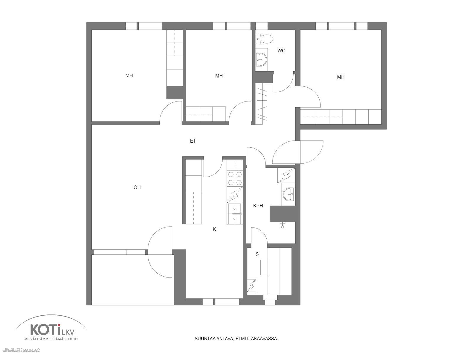 - Pinta-alan peruste: Yhtiöjärjestyksen mukainen ja isännöitsijäntodistuksen mukainen. Ei tarkistusmitattu. Pinta-alat saattavat tämän ikäisissä kohteissa (yhtiö rekisteröity ennen 01.01.1992) poiketa olennaisestikin asuinrakennusten nykyisten mittaustapojen ja standardien (SFS 5139) mukaan laskettavasta asuintilojen pinta-alasta. Pinta-ala voi siis olla edellä mainittua pienempi tai suurempi.