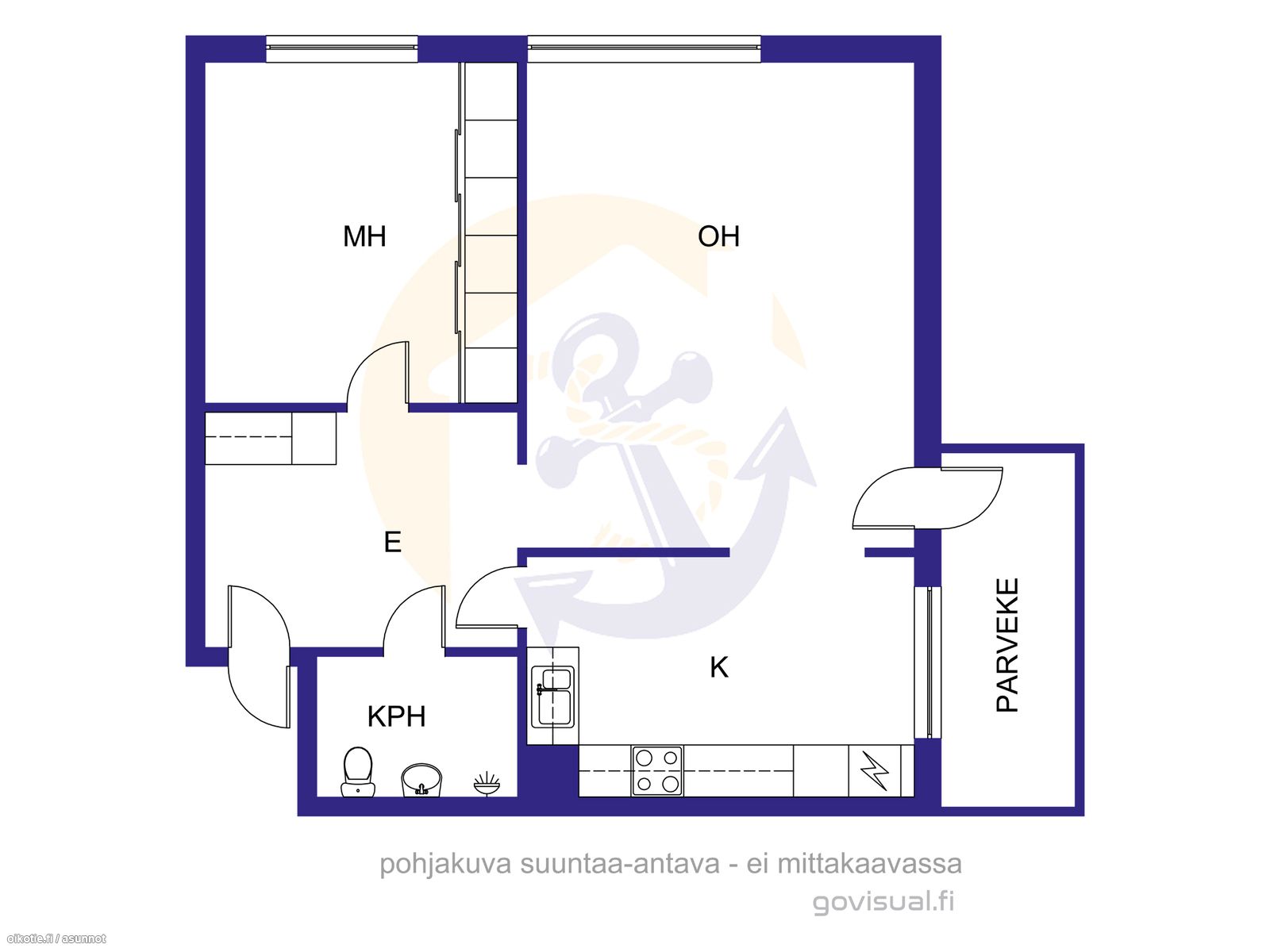 Valoisa kaksio hissillisen kerrostalon toisesta asuinkerroksesta. Siistit, vaaleat pinnat. Laminaattilattia. Kylpyhuone kaakeloitu. Keittiökaapistojen ovet ja laatikostojen etusarjat uusittu. Makuuhuoneessa runsaasti säilytystilaa (liukuovikaapistot). Lasitettu parveke. Hyvinhoidettu, rauhallinen taloyhtiö. Edullinen hoitovastike (199,25 e/kk). Loistava sijainti kaupungin keskustassa. Kiva kaupunkiasunto, joka sopisi hyvin myös sijoituskäyttöön. Kohde vapautuu uudelle omistajalle heti kaupanteossa.
