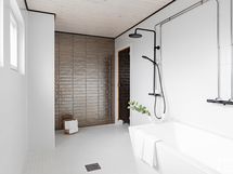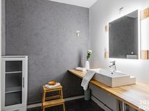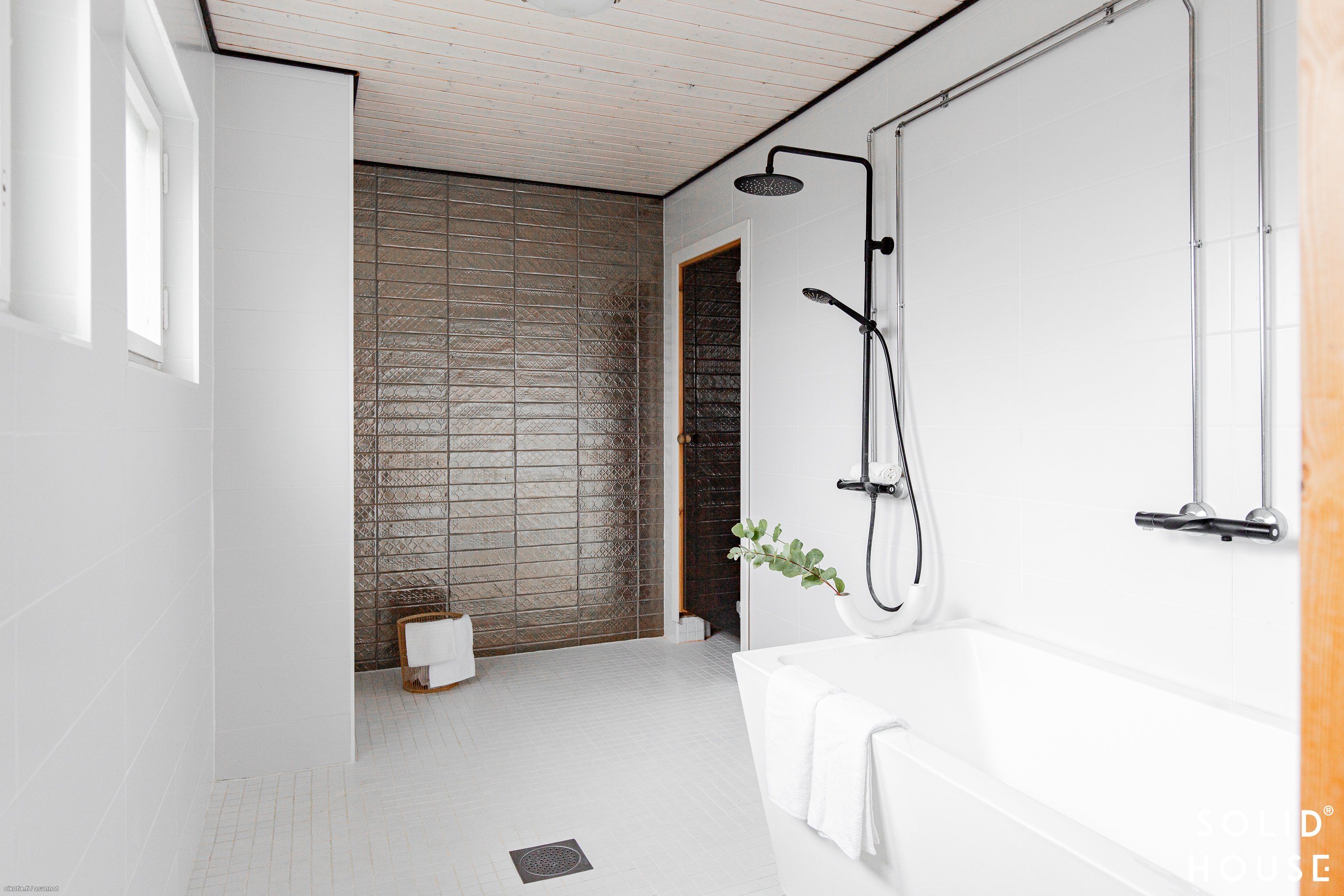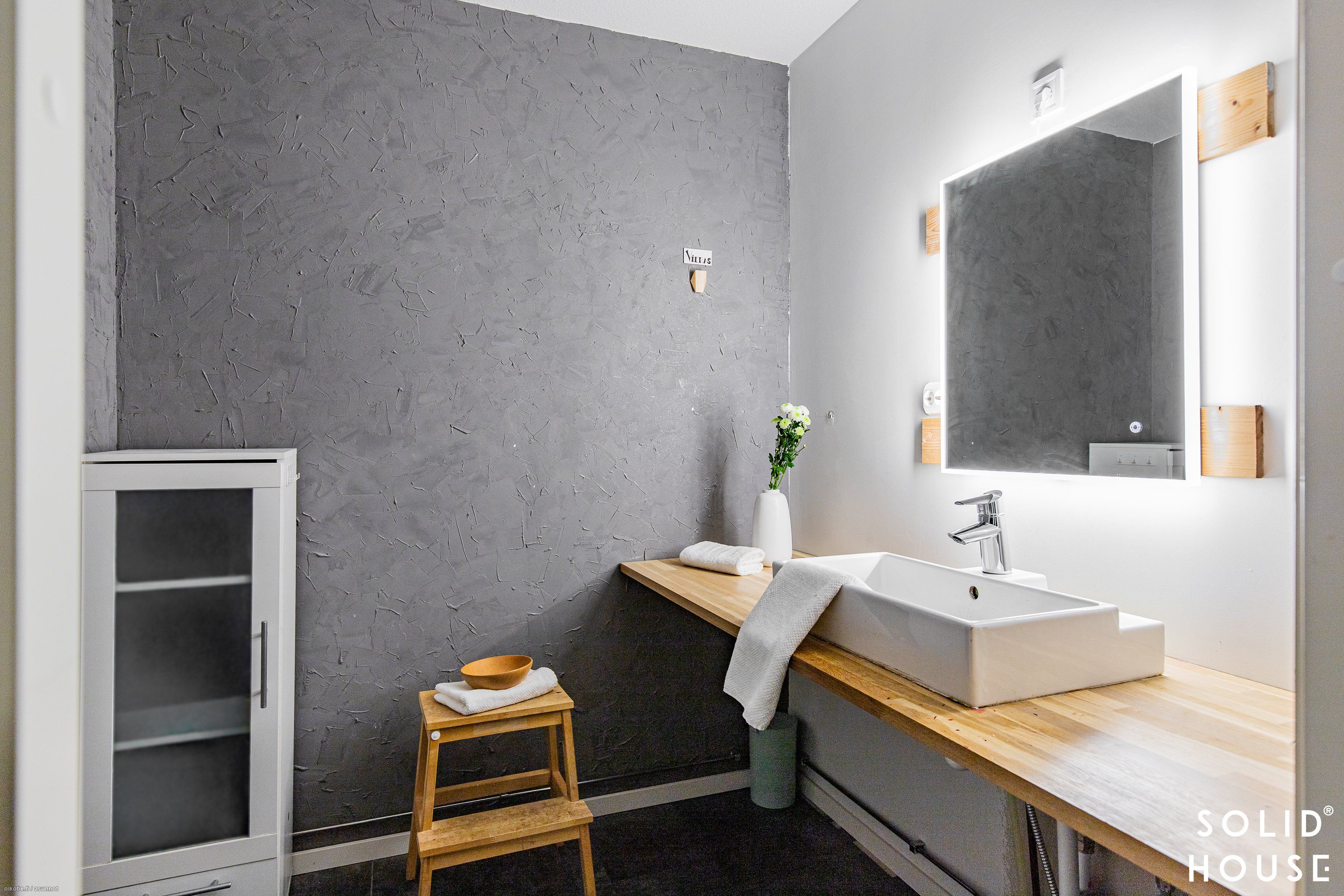 - Pesutilojen varusteet: Suihku, kylpyamme ja lattialämmitys. Pesutilojen kuvaus: Tilavan ja kauniiksi remontoidun kylpyhuoneen kruunaa kylpyamme ja varaus kahdelle suihkulle. Erillisten WC:n lukumäärä: 1. Erillisen WC:n varusteet: WC-istuin, peili, pesuallas ja lattialämmitys. Erillisen WC:n kuvaus: Tilava erillinen wc, jossa struktuuri seinä joka tuo nykyaikaisuutta.